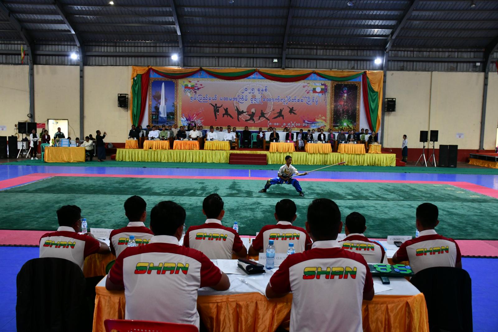 ဦးစွာ ရှမ်းပြည်နယ်အစိုးရအဖွဲ့ဝင်၊ ပြည်နယ်စီးပွားရေးရာဝန်ကြီး ဦးခွန်သိန်းမောင်၊ ပြည်နယ်သယံဇာတရေးရာဝန်ကြီး ဦးစိုင်းလိတ်နှင့်တာဝန်ရှိသူများ၊ အားကစားဝါသနာရှင်များက ချန်းစု(ကျား)၊ နန်းကွန့်(မ)ယှဉ်ပြိုင်နေမှုကို ကြည့်ရှုအားပေးသည်။