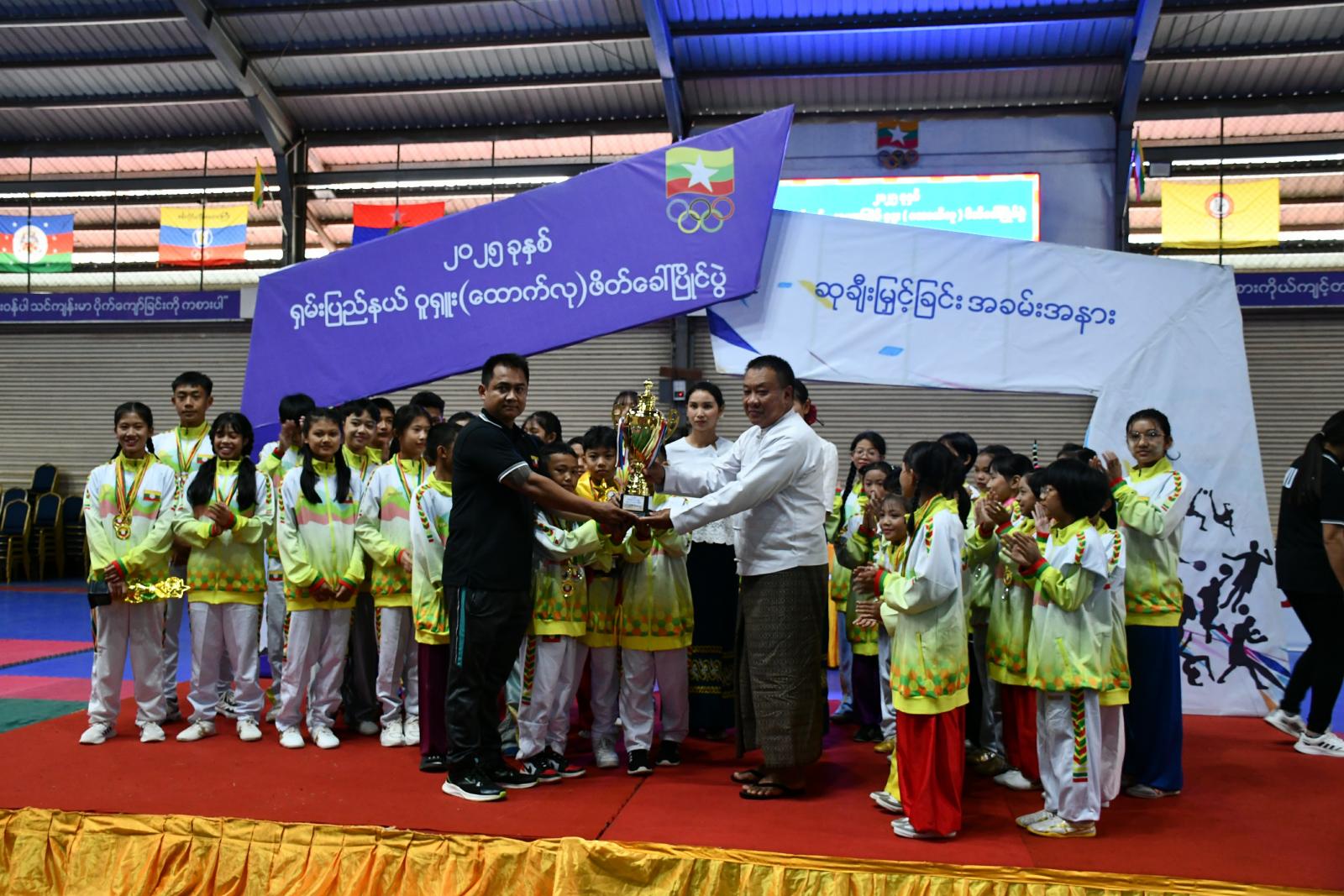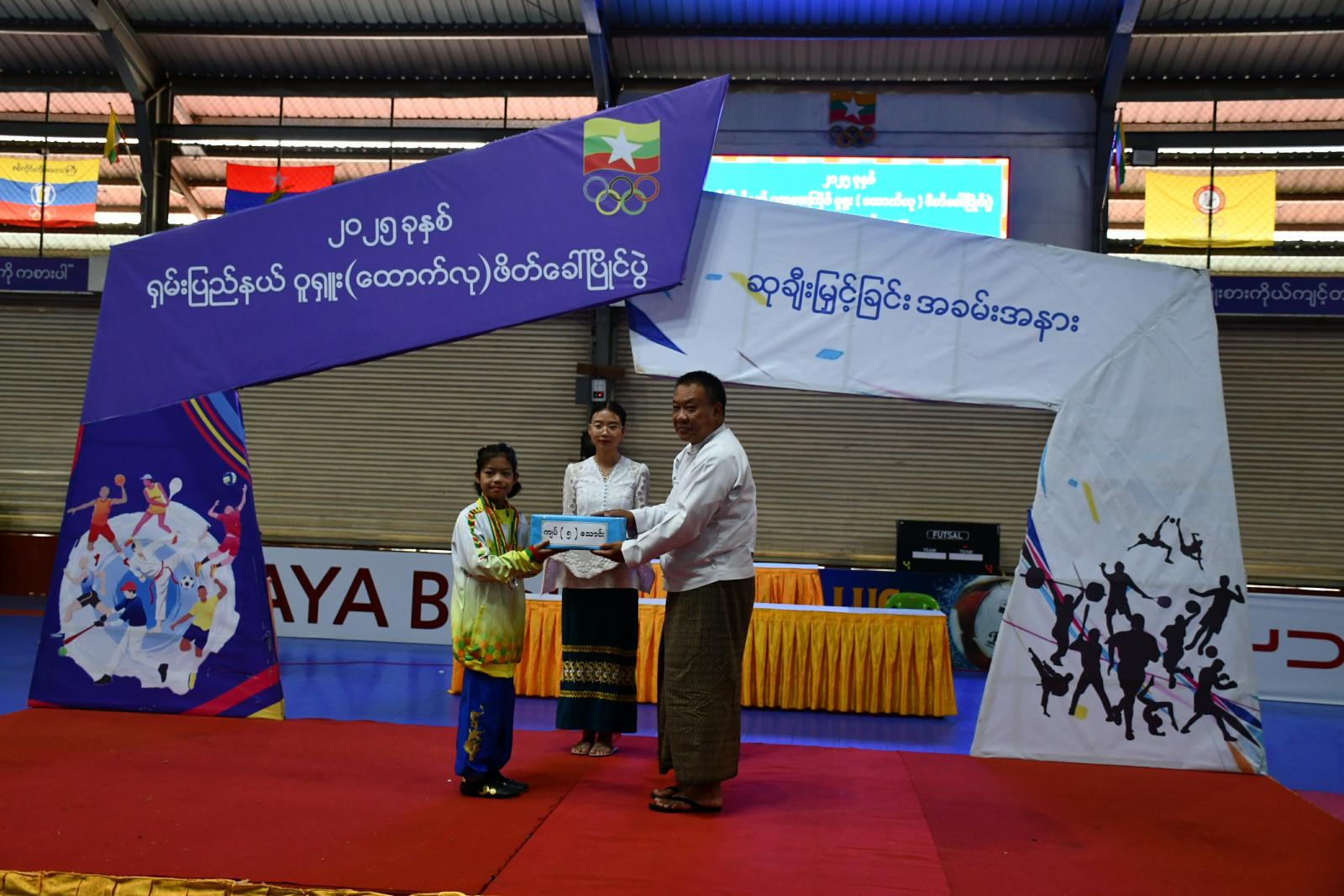 ထို့နောက်ဆုချီးမြှင့်ပွဲကျင်းပရာ ပြိုင်ပွဲများတွင်အကောင်းဆုံးဆုရရှိသည့် အားကစားသမားများအား ဆုများပေးအပ်ချီးမြှင့်ရာတက္ကသိုလ်အသီးသီးမှပါမောက္ခချုပ်များနှင့်တာဝန်ရှိသူများက ဆုများပေးအပ်ချီးမြှင့်ကြသည်။ ဆက်လက်၍ ရှမ်းပြည်နယ်အစိုးရအဖွဲ့ဝင်၊ ပြည်နယ် စီးပွားရေးရာ ဝန်ကြီးဦးခွန်သိန်းမောင်က ချန်းစုပြိုင်ပွဲနှင့် နန်းကွန့်ပြိုင်ပွဲတွင် ပထမ၊ ဒုတိယ၊ တတိယဆုရရှိသည့် အားကစားသမားများကို တစ်ဦးချင်းဆုတံဆိပ်များ၊ ဂုဏ်ပြုချီးမြှင့်ငွေများ ပေးအပ်ခဲ့ပြီးရွှေတံဆိပ် (၁၆)ခု၊ငွေတံဆိပ်(၁၅)ခု၊ကြေးတံဆိပ်(၁၅)ခုဖြင့် တံခွန်စိုက်ဆုရရှိသည့် ရှမ်းပြည်နယ်အသင်းအား ပြည်နယ်ဝန်ကြီးချုပ်ကိုယ်စား ပြည်နယ်စီးပွားရေးရာဝန်ကြီးက တံခွန်စိုက်ဆုဖလားကို ချီးမြှင့်ခဲ့သည်။