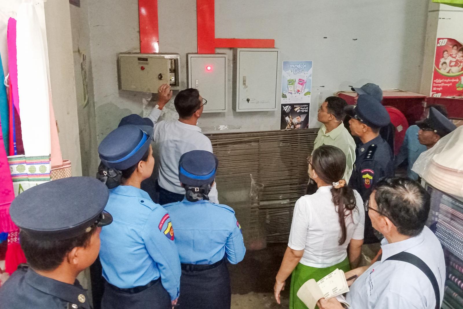 မီးဘေးလုံခြုံရေးစစ်ဆေးရာတွင် မြို့နယ်မီးသတ်ဦးစီးမှူး ဦးကြည်စိုးဟန်နှင့်တပ်ဖွဲ့ဝင်များ၊ ဒုတိယမြို့နယ်အုပ်ချုပ်ရေးမှူး ဦးကျော်ညွန့်၊ မြို့နယ်လျှပ်စစ်အင်ဂျင်နီယာ ဦးဇော်ဇော်အောင်၊ မြို့နယ်စည်ပင်သာယာရေးအဖွဲ့ ဦးစီးအရာရှိ ဦးအောင်ဘိုလင်းနှင့် ဈေးတာဝန်ခံများ၊ ဈေးကော်မတီဝင်များပူးပေါင်းကာ မြို့မဈေးကြီးနှင့် ပတ်ဝန်းကျင်ရှိ ဈေးဆိုင်ခန်းများအား မီးလောင်မှု၊ မီးလန့်မှုမဖြစ်ပွားစေရေး စနစ်တကျမီးသုံးစွဲမှုရှိ မရှိ၊ လျှပ်စစ်ဝါယာကြိုးများ စနစ်တကျသွယ်တန်းထားရှိမှုရှိ မရှိ၊ မီးလောင်လွယ်သည့်ပစ္စည်းများ သိုလှောင်မှုရှိ မရှိတို့ကို လိုက်လံစစ်ဆေးကာ မီးသတ်ဆေးဘူးနှင့် မီးချိတ်၊ မီးကပ်၊ ရေပုံး၊ သဲပုံးများ အသင့်ဆောင်ရွက်ထားရှိရေး၊ ရေလှာင်ကန်များတွင် ရေဖြည့်တင်းထားရှိရေးနှင့် မီးဘေးလုံခြုံရေးလိုက်နာဆောင်ရွက်ရမည့်အချက်များကို ဆွေးနွေးမှာကြားသည်။ ထို့နောက် မြို့မဈေးကြီးရှိ အရေးပေါ်မီးသတ်ရေပိုက်များ၊ မီးသတ်စက်များနှင့် ရေငုတ်များ ကောင်းမွန်မှုရှိ၊မရှိ စစ်ဆေးပြီး မီးသတ်ရေလှောင်ကန်အတွင်း ရေဖြည့်တင်းထားရှိမှုများကို စစ်ဆေးဆောင်ရွက်ခဲ့ကြောင်း သိရသည်။