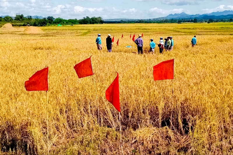 ရှမ်းပြည်နယ်(တောင်ပိုင်း) လင်းခေးခရိုင် မိုးနဲမြို့နယ် နမ့်မော်ဆွမ့်ကျေးရွာအုပ်စု၌ မြို့နယ်စိုက်ပျိုးရေးဦးစီးဌာနမှ တာဝန်ရှိသူများ၊ မြို့နယ်မြေ စာရင်းဦးစီးဌာနမှတာဝန်ရှိသူများနှင့် တောင်သူများပူးပေါင်းကာ မိုးစပါးပန်းတိုင်ရရှိရေး ဧက ၁၀၀ စံပြစိုက်ခင်းတွင် စိုက်ပျိုးထားသော DU-12 မိုးစပါးစံကွက်ရိတ်သိမ်းခြင်းကို ယနေ့နံနက် ၈ နာရီက ဆောင်ရွက်သည်။