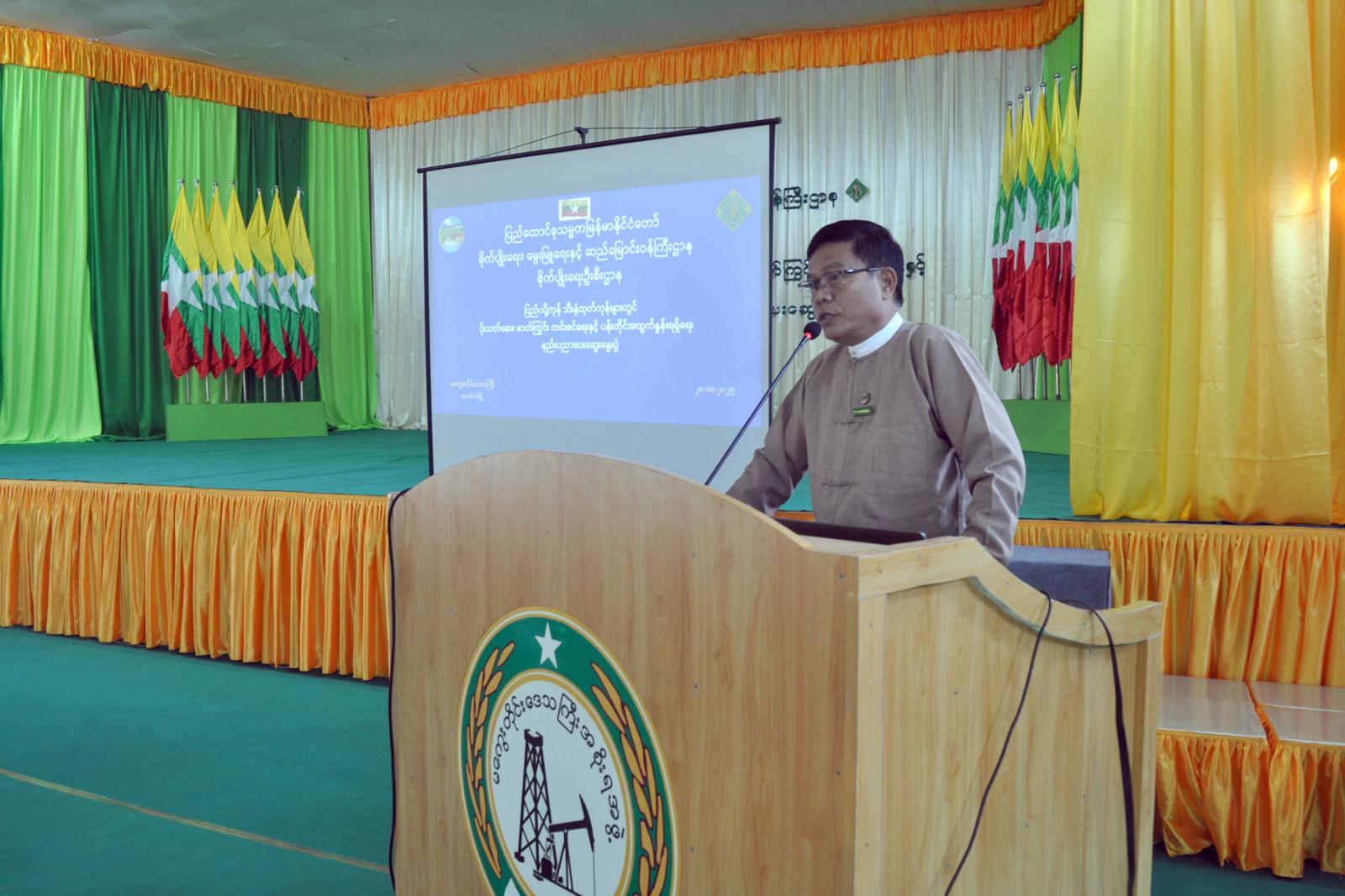 ရှေးဦးစွာ စိုက်ပျိုးရေးဦးစီးဌာန တိုင်းဒေသကြီးဦးစီးမှူး ဦးယဉ်ထွန်းက အဖွင့်အမှာစ ကားပြောကြားပြီး စိုက်ပျိုးရေးဦးစီးဌာန(ရုံးချုပ်) သီးနှံကာကွယ်ရေးဌာနခွဲမှ ညွှန်ကြားရေးမှူး ဦးဇော်လင်းက စိုက်ပျိုးရေးထုတ်ကုန်များ ကမ္ဘာ့ဈေးကွက်တွင် ယှဉ်ပြိုင်နိုင်ရေးနှင့်ပြည်တွင်း စားသုံးသူများ အစားအစာဘေးကင်းလုံခြုံမှုရှိရေးသည် အရေးကြီးကြောင်း၊ စိုက်ပျိုးသီးနှံများ၏ ပန်းတိုင်အထွက်နှုန်းရရှိရေး ကြိုးပမ်းဆောင်ရွက်ရန်လိုအပ်သကဲ့သို့ ထွက်ရှိလာသောသီးနှံထုတ် ကုန်များတွင် ပိုးသတ်ဆေးဓာတ်ကြွင်းကင်းစင်းရေးသည်လည်း အရေးကြီးပါကြောင်း၊ ဝန်ထမ်း များ၊ သီးနှံစိုက်တောင်သူများ၊ ပိုးသတ်ဆေးအရောင်းဆိုင်များ၊ ဝယ်ယူကြိတ်ခွဲ သိုလှောင်ရောင်း ချသူများ၊ စိုက်ပျိုးရေးထွက်ကုန်များကို တင်ပို့ရောင်းချနေသူများ၊ သက်ဆိုင်ရာဌာနမှ တာဝန်ရှိ သူများ အတူတကွပူးပေါင်းဆောင်ရွက်ပါက ပိုးသတ်ဆေးဓာတ်ကြွင်းကင်းစင်သောသီးနှံများကို ထုတ်လုပ်နိုင်မည်ဖြစ်ပါကြောင်း ပြောကြားခဲ့သည်။
