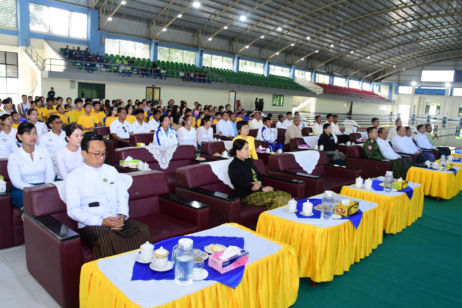 ဦးစွာ တိုင်းဒေသကြီးဝန်ကြီးချုပ်က“ နိုင်ငံတော်အကြီးအကဲက မြန်မာ့အားကစား အဆင့်အတန်းတိုးတက်မြင့်မားလာစေရေးအတွက် ရည်ရွယ်ပြီးအဆင့်မြင့်ရေကူးကန် တည်ဆောက်ရန် ခွင့်ပြုပေးခဲ့ခြင်းဖြစ်ရာ နိုင်ငံတကာ အားကစားပြိုင်ပွဲများတွင် အောင်မြင်မှုရရှိစေမည့် အားကစားသမားများ ပေါ်ထွက်လာစေရန်ရည်ရွယ်ပြီး အခြေခံရေကူးနှင့် ဒိုင်ဗင်သင်တန်းကို ဖွင့်လှစ်သင်ကြားပေးခြင်းဖြစ်ပါကြောင်း၊ အခြေခံရေကူးနှင့် ဒိုင်ဗင်သင်တန်းများ ဖွင့်လှစ်ပေးနေခြင်းသည် အနာဂတ်မျိုးဆက်သစ် လူငယ်များ၏ ကျန်းမာကြံ့ခိုင်မှု မြင့်မားလာစေခြင်းအပြင် အရေးကြုံက သက်လုံကောင်း စေရန်ဖြစ်ပါကြောင်း၊ သင်တန်းသားများအနေဖြင့်လည်းသင်တန်းက ရရှိသည့် နည်းစနစ်နှင့် ကျွမ်းကျင်မှုများကို အခြေခံပြီး အဆင့်မြင့် အားကစားပညာရပ်များကို ဆက်လက်လေ့လာလိုက်စားရင်း လာမည့်အားကစားပြိုင်ပွဲများတွင် ရွှေတံဆိပ်ဆုများရရှိအောင် ကြိုးစားကြရန်နှင့် တိုင်းဒေသကြီး ဂုဏ်ဆောင်မှသည် နိုင်ငံဂုဏ်ဆောင် အားကစားသမားများ ဖြစ်လာအောင် ဆက်လက်ကြိုးပမ်းသွားကြရန် လိုပါကြောင်း”အမှာစကားပြောကြားသည်။