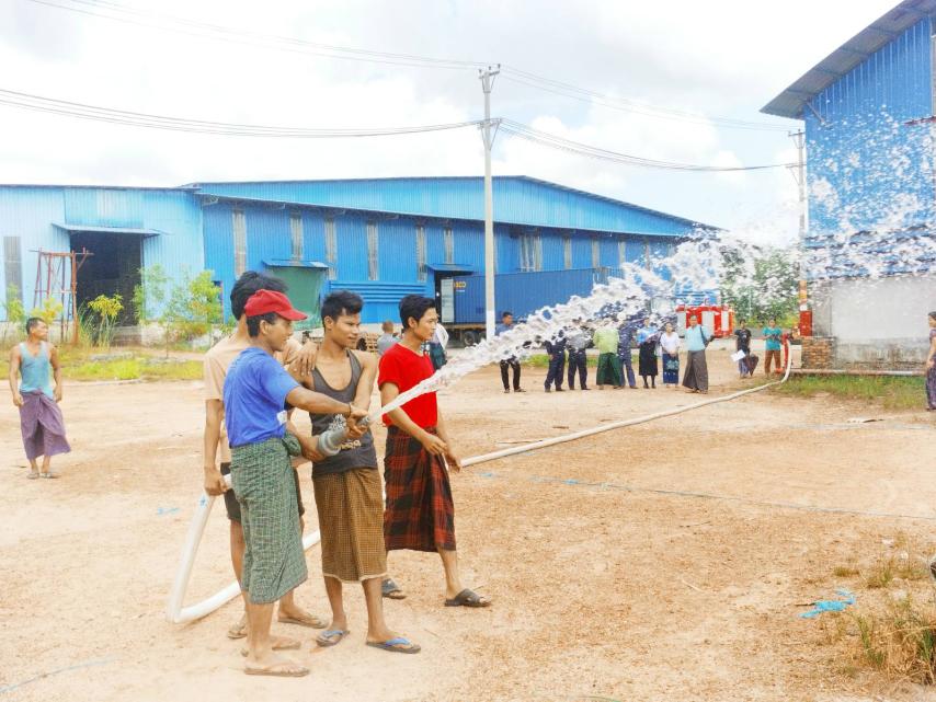 မွန်ပြည်နယ်၊ သံဖြူဇရပ်မြို့နယ်ရှိ စက်ရုံအလုပ်ရုံများ မီးဘေးလုံခြုံရေးအတွက် ဆောင်ရွက်လျက်ရှိရာ အောက်တိုဘာ ၂၉ ရက် နံနက်ပိုင်းက မော်လမြိုင်ရေးကားလမ်းပေါ်ရှိ ဝဲကလိကျေးရွာ မြန်မာ့စိန်လင်းသစ်ခွဲသားစက်ရုံအား သွားရောက်စစ်ဆေးသည်။