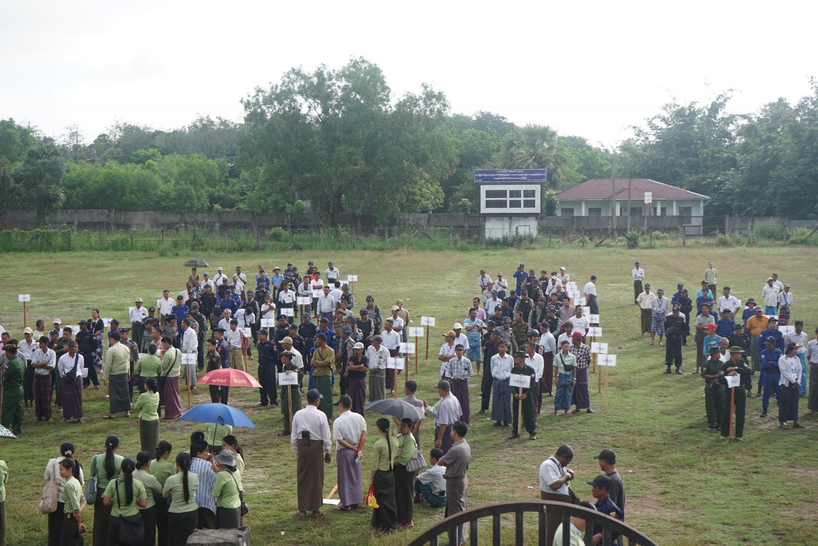 အဆိုပါလုံခြုံရေးဇာတ်တိုက်လေ့ကျင့်ခြင်းကို မြို့နယ်စီမံခန့်ခွဲရေးနှင့်အုပ်ချုပ်ရေးကော်မတီဥက္ကဋ္ဌ ဦးဇော်နိုင်ဝင်းနှင့် အဖွဲ့ဝင်များ၊ မြို့နယ်ရွေးကောက်ပွဲကော်မရှင်အဖွဲ့ခွဲ တာဝန်ရှိသူများမှ ကြီးကြပ်ဆောင်ရွက်ခဲ့ကြပြီး ဇုန်အလိုက် လုံခြုံရေးဆောင်ရွက်ကြမည့် တာဝန်ရှိသူများနှင့် ရွေးကောက်ပွဲကျင်းပနေစဉ် ဗဟိုစည်း၊ အနီးစည်း၊ အတွင်းစည်း၊ အပြင်စည်းနှင့် အဝေးစည်း လုံခြုံရေးတာဝန်ယူဆောင်ရွက်မည့်အဖွဲ့တို့အား မဲရုံနှင့်ပတ်သက်သည့် လုပ်ငန်းစဉ်များအား ပြောကြားကာ ဇာတ်တိုက်လေ့ကျင့်ခြင်းများ ဆောင်ရွက်ခဲ့ကြသည်။