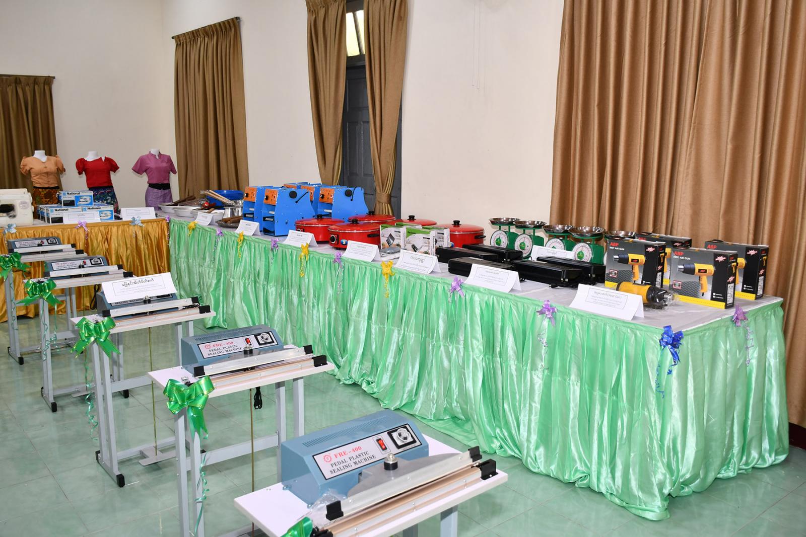 လုပ်ငန်းသုံးပစ္စည်းပေးအပ်ပွဲတွင် မြိတ်ခရိုင်စီမံခန့်ခွဲရေးနှင့်အုပ်ချုပ်ရေးကော်မတီဥက္ကဋ္ဌ ဦးမျိုးဦးက အမှာစကားပြောကြားပြီး အသေးစားစက်မှုလက်မှုလုပ်ငန်းဦးစီးဌာန မြိတ်ခရိုင်ဦးစီးမှူး ဒေါ်သူသူစံက စီမံကိန်းအကြောင်းအရာများ၊ လုပ်ငန်းသုံးပစ္စည်းများ ပေးအပ်ခြင်းနှင့်ပတ်သက်၍ ရှင်းလင်းပြောကြားသည်။