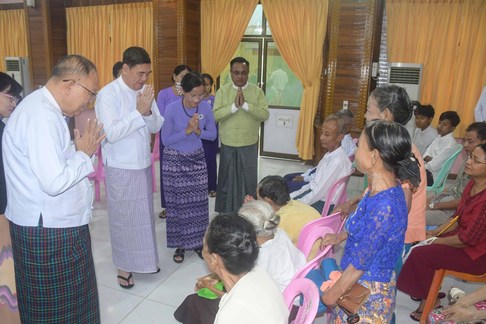 ဆက်လက်၍ ပြည်နယ်ဝန်ကြီးချုပ်နှင့်အဖွဲ့သည် အသက်(၈၅)နှစ် အထက်ရှိ သက်ကြီးပုဂ္ဂိုလ်များအား လူမှုရေးပင်စင်ထုတ်ပေးနေမှုတို့ကို လှည့်လည်ကြည့်ရှုအားပေးကြပြီး လိုအပ်သည်များကို တာဝန်ရှိသူများနှင့် ပေါင်းစပ်ညှိနှိုင်းပေးကြသည်။ ထို့နောက် ပြည်နယ်ဝန်ကြီးချုပ် ဦးထိန်လင်းနှင့်ဇနီး ပြည်နယ်မိခင်နှင့်ကလေးစောင့်ရှောက်မှု ကြီးကြပ်ရေးအဖွဲ့နာယက ဒေါ်ဆွေဆွေမြတ်၊ ပြည်နယ်တရားလွှတ်တော်တရားသူကြီးချုပ်၊ ပြည်နယ်အစိုးရအဖွဲ့ဝင်များနှင့်တာဝန်ရှိသူများက အသက်(၈၅)နှစ်အထက်ရှိ သက်ကြီးပုဂ္ဂိုလ်များအား ရခိုင်ပြည်နယ်အစိုးရအဖွဲ့က ပေးအပ်ချီးမြှင့်သည့်ဆန်နှင့် စားသောက်ဖွေရာများအား ပေးအပ်ချီးမြှင့်ကြသည်။
