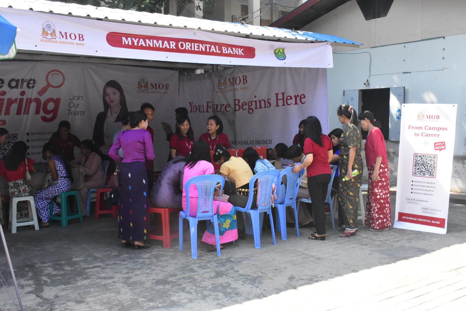 Job and Career Fair အလုပ်အကိုင်နှင့် သက်မွေးမှုလုပ်ငန်းအခွင့်အလမ်း ကျင်းပဆောင်ရွက်ခဲ့ရာ ကုမ္မဏီ ၁၂ ခုပါဝင်ခဲ့ပြီး အဆိုပါလုပ်ငန်းများတွင် ကျောင်းသား၊ကျောင်းသူများအနေဖြင့် မိမိနှစ်သက်ရာ အလုပ်အကိုင် အခွင့်အလမ်းများတွင် လုပ်ကိုင်လျှောက်ထားနိုင်ကြောင်း သိရှိရသည်။