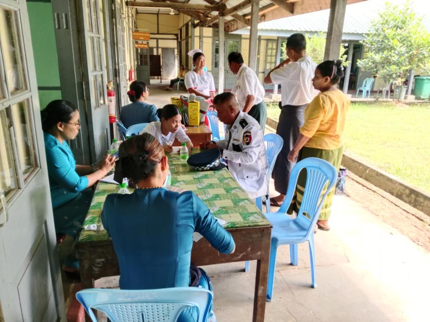 ထိုသို့ ကိုဗစ်-၁၉ ကာကွယ်ဆေးများထိုးနှံပေးရာတွင် မြို့နယ်ပြည်သူ့ကျန်းမာရေးဦးစီးဌာနမှ ကျန်းမာရေးမှူးအဆင့်(၁) ဒေါ်အေးအေးနိုင်နှင့် ဒေါ်တင်တင်ဝင်းတို့၏ ကြီးကြပ်မှုဖြင့် ကျန်းမာရေးဝန်ထမ်းများက ကိုဗစ်-၁၉ရောဂါကာကွယ်ဆေးထိုးရန် လာရောက်သည့် ဌာနဆိုင်ရာဝန်ထမ်းများနှင့် ရပ်ကွက်/ကျေးရွာအုပ်ချုပ်ရေးမှူးများအား အပူချိန်တိုင်းတာပေးခြင်း၊ သွေးပေါင်ချိန်တိုင်းတာပေးခြင်း၊ ကိုယ်အလေးချိန်တိုင်းတာပေးခြင်းနှင့် လိုအပ်သည်များကို ဆောင်ရွက်ကာ ကိုဗစ်- ၁၉ ရောဂါကာကွယ်ဆေးများ ထိုးနှံပေးခဲ့ကြောင်း သိရသည်။