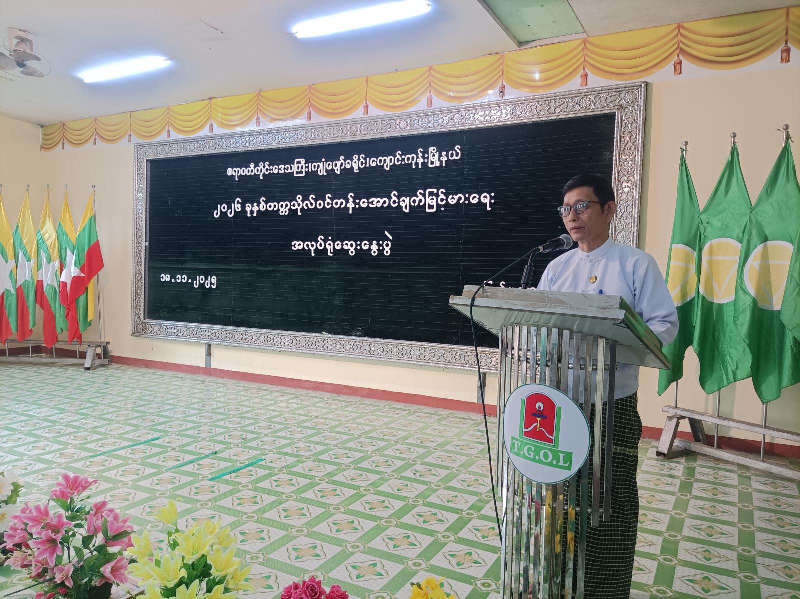 အခမ်းအနားတွင် မြို့နယ်ပညာရေးကြီးကြပ်မှုကော်မတီဥက္ကဋ္ဌ မြို့နယ်အုပ်ချုပ်ရေးမှူး ဦးကိုကိုဦးက အဖွင့်အမှာစကားပြောကြားပြီး၊မြို့နယ်စီမံခန့်ခွဲရေးနှင့်အုပ်ချုပ်ရေးကော်မတီအဖွဲ့ဝင် ဦးတင်မောင်က အောင်မြင်မှုရရှိဖို့ဆိုတာ ကြိုးစားအားထုတ်မှုရှိဖို့လိုကြောင်း၊ မိမိကျောင်းရဲ့ အားနည်းချက်၊ အားသာချက်များကို မိမိတို့ကိုယ်တိုင် သိရှိကြဖို့လိုကြောင်းပြောကြားခဲ့သည်။