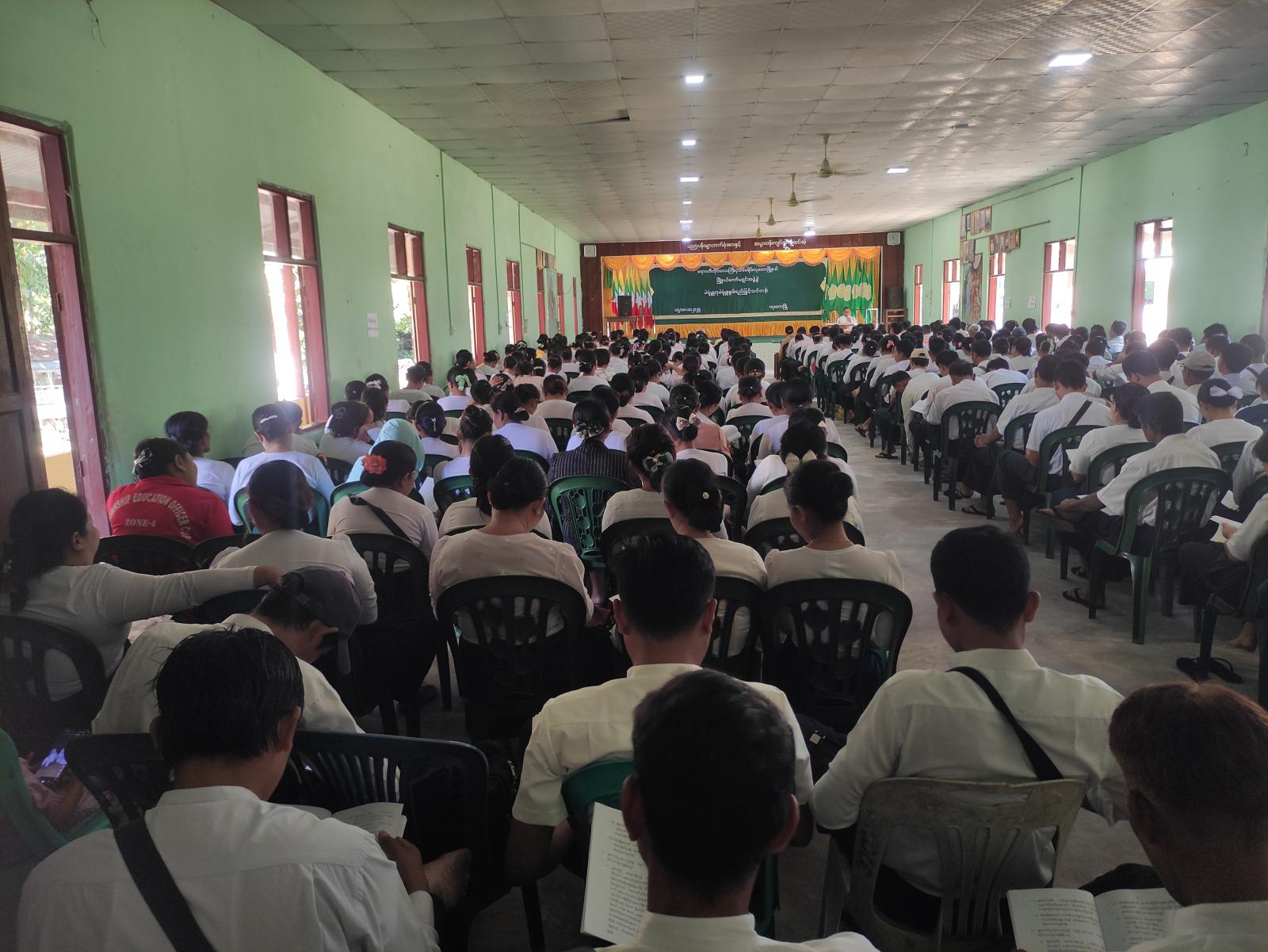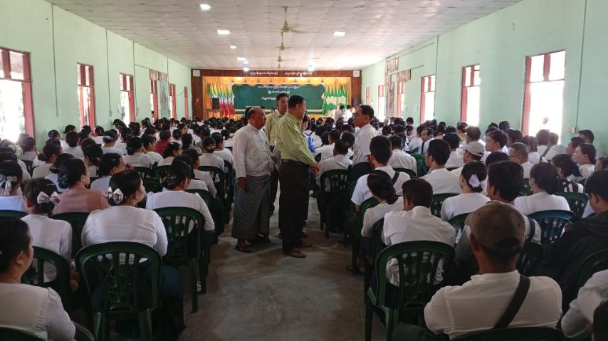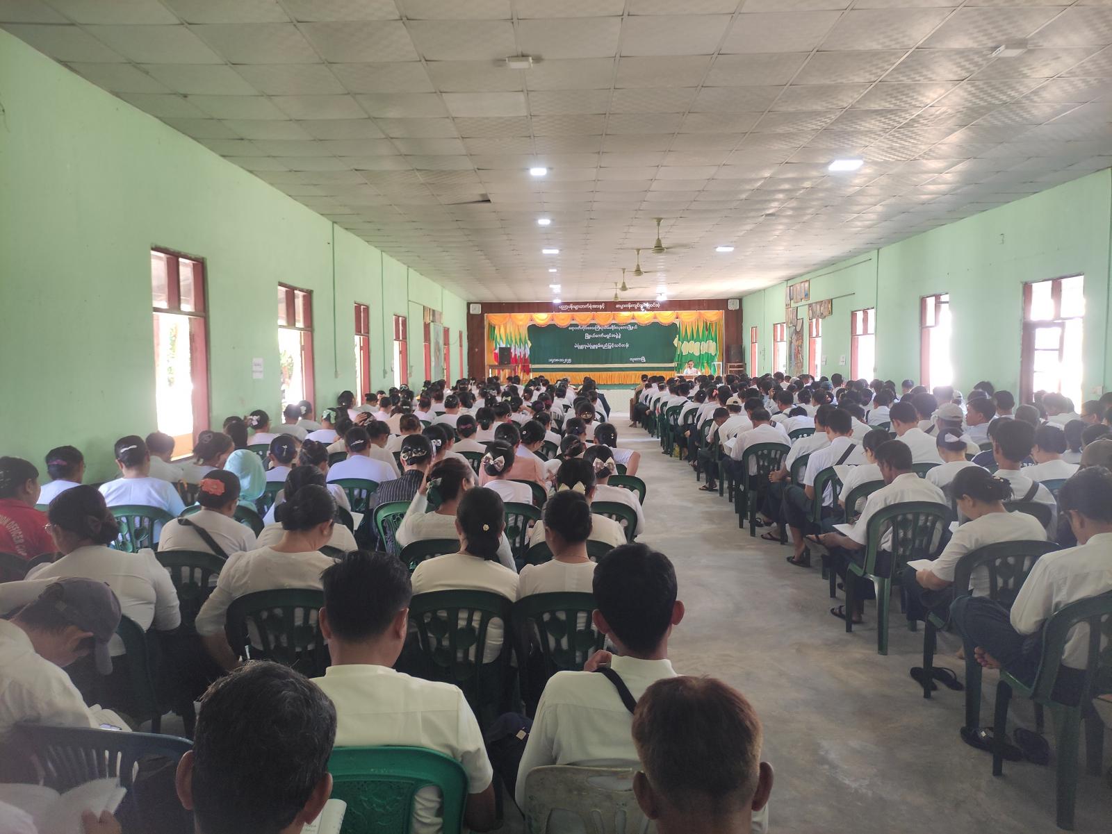 ဧရာဝတီတိုင်းဒေသကြီး၊ ပုသိမ်ခရိုင်၊ ငပုတောမြို့နယ်ရွေးကော်ပွဲ ကော်မရှင်အဖွဲ့ခွဲမှမဲရုံမှူး၊ ဒု-မဲရုံမှူး သင်တန်းဖွင့်ပွဲအခမ်းအနားကို ယမန်နေ့က အခြေခံပပညာအထက်တန်းကျောင်း နဝရတ်ခန်းမတွင် ကျင်းပပြုလုပ်ရာ မြို့နယ်စီမံခန့်ခွဲရေးနှင့်အုပ်ချုပ်ရေးကော်မတီဥက္ကဋ္ဌ ဦးအောင်ဆန်းဦးနှင့်အဖွဲ့ဝင်များ၊ ဌာနဆိုင်ရာမှတာဝန်ရှိသူများ၊ သင်တန်းသား၊ သင်တန်းသူများ တက်ရောက်ကြသည်။