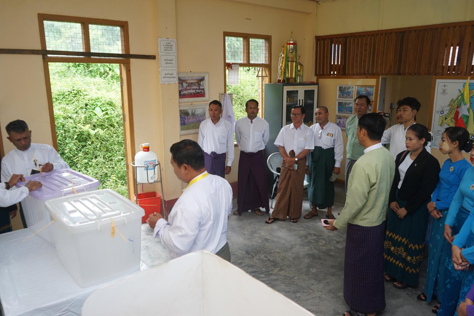 တက္ကသိုလ်ကျောင်းသား/သူများ ကြိုတင်ဆန္ဒမဲမေးရာတွင် ကျောင်းသား/သူများက ကြိုတင်ဆန္ဒမဲလက်မှတ်များ ထုတ်ယူပြီး လျှို့ဝှက်ဆန္ဒပြုခန်းတွင် မိမိကြိုက်နှစ်သက်သည့် ကိုယ်စားလှယ်လောင်းကို ဆန္ဒပြုမဲပေးခဲ့ကြပြီး ကြိုတင်မဲပုံးအတွင်းသို့ ထည့်ကြသည်။ တက္ကသိုလ်ကျောင်းသား/သူများ ကြိုတင် ဆန္ဒမဲပေးနေမှုအား မြို့နယ်ပါတီစုံဒီမိုကရေစီ အထွေထွေရွေးကောက်ပွဲကော်မတီ ဥက္ကဋ္ဌ ဦးအောင်စန်းဝင်း နှင့် တာဝန်ရှိသူများက ကြည့်ရှု အားပေးကြသည်။