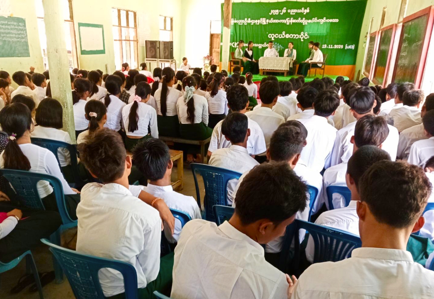 ရှေ့ဦးစွာ ပြန်ကြားရေးနှင့်ပြည်သူ့ဆက်ဆံရေးဦးစီးဌာန ဦးစီးအရာရှိ ဒေါ်အေးမြင့်သိန်းက လူငယ်စကားဝိုင်းကျင်းပရခြင်း၏ ရည်ရွယ်ချက်များအား ရှင်းလင်းပြောကြားခဲ့ပြီး လူငယ်စကားဝိုင်းကို ကျင်းပခဲ့ရာ Grade-10 ကျောင်းသား စိုင်းဟန်သွေးနောင်က လူငယ်နှင့် အားကစားခေါင်းစဉ်ဖြင့်လည်းကောင်း၊ Grade-10 ကျောင်းသူ မနန္ဒာအောင်က လူငယ်နှင့် နည်းပညာခေါင်းစဉ်ဖြင့်လည်းကောင်း၊ Grade-11 ကျောင်းသူမအိဖြူစင်က လူငယ်နှင့်စာပေ ခေါင်းစဉ်ဖြင့်လည်းကောင်း၊ Grade-11 ကျောင်းသူမသီရိစံက လူငယ်နှင့်ကျန်းမာ ရေးခေါင်းစဉ် တို့ဖြင့် အသီးသီးဆွေးနွေးခဲ့ကြပြီး တက်ရောက်လာသော ကျောင်းသား၊ ကျောင်းသူများမှ သိရှိလိုသည်များကို ခေါင်းစဥ်အလိုက် ပါဝင်ဆွေးနွေးခဲ့ကြသည်။