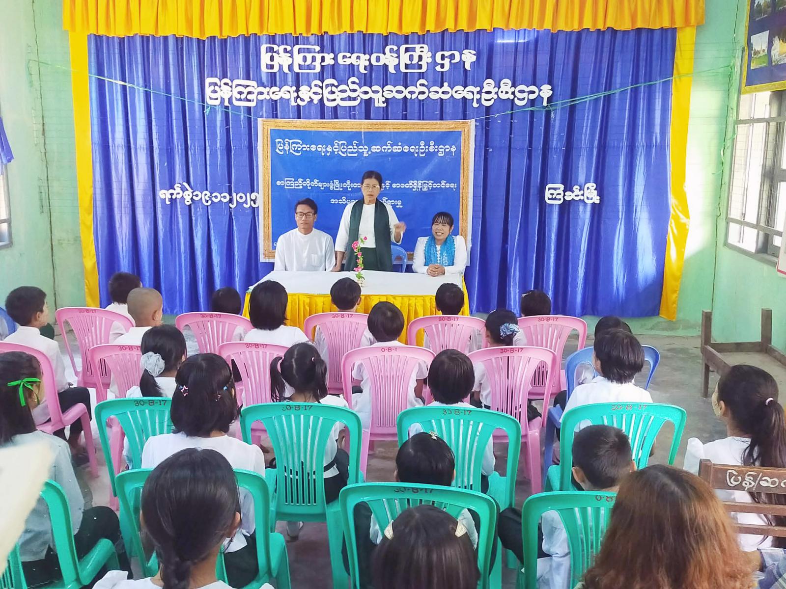အခမ်းအနားတွင် အခြေခံပညာမူလတန်းကျောင်း(သဲဖြူ)မှ ကျောင်းအုပ်ဆရာမကြီး ဒေါ်သန်းသန်းလွင်က အမှာစကားပြောကြားပြီး မြို့နယ်ပြန်ကြားရေးနှင့်ပြည်သူ့ဆက်ဆံရေး ဦးစီးဌာနမှ ဦးစီးအရာရှိ ဒေါ်ခင်မိုးမြင့်က စာဖတ်ရှိန်မြှင့်တင်ရေးအသိပညာပေးဟောပြောပွဲနှင့် ကဗျာရွတ်၊ ပုံပြော၊ ဉာဏ်စမ်းပဟေဠိပြိုင်ပွဲများကို လစဉ်လူထုအခြေပြုဗဟိုဌာန(Community Centre ) ခန်းမ၌ ကျင်းပရခြင်းနှင့်ပတ်သက်၍ ရှင်းလင်းပြောကြားပြီးနောက် “စာပေဖတ်ရှုရခြင်းနှင့် အသိအလိမ္မာ”ခေါင်းစဉ်ဖြင့် ဟောပြောသည်။ ဆက်လက်၍ အ.မ.က(ပန်းရံစု)ကျောင်းမှ မူလတန်းပြဆရာ ဦးဇော်လွင်က ကျေးဇူးတင်စကား ပြောကြားသည်။