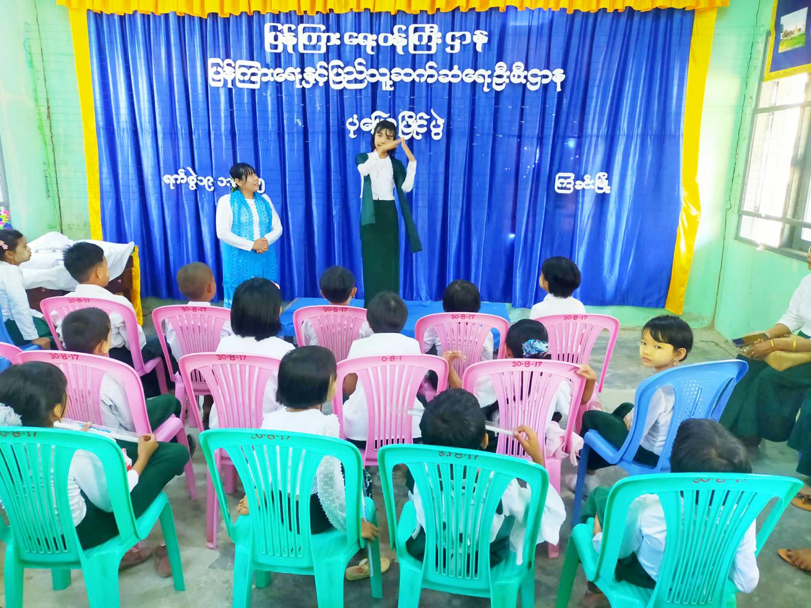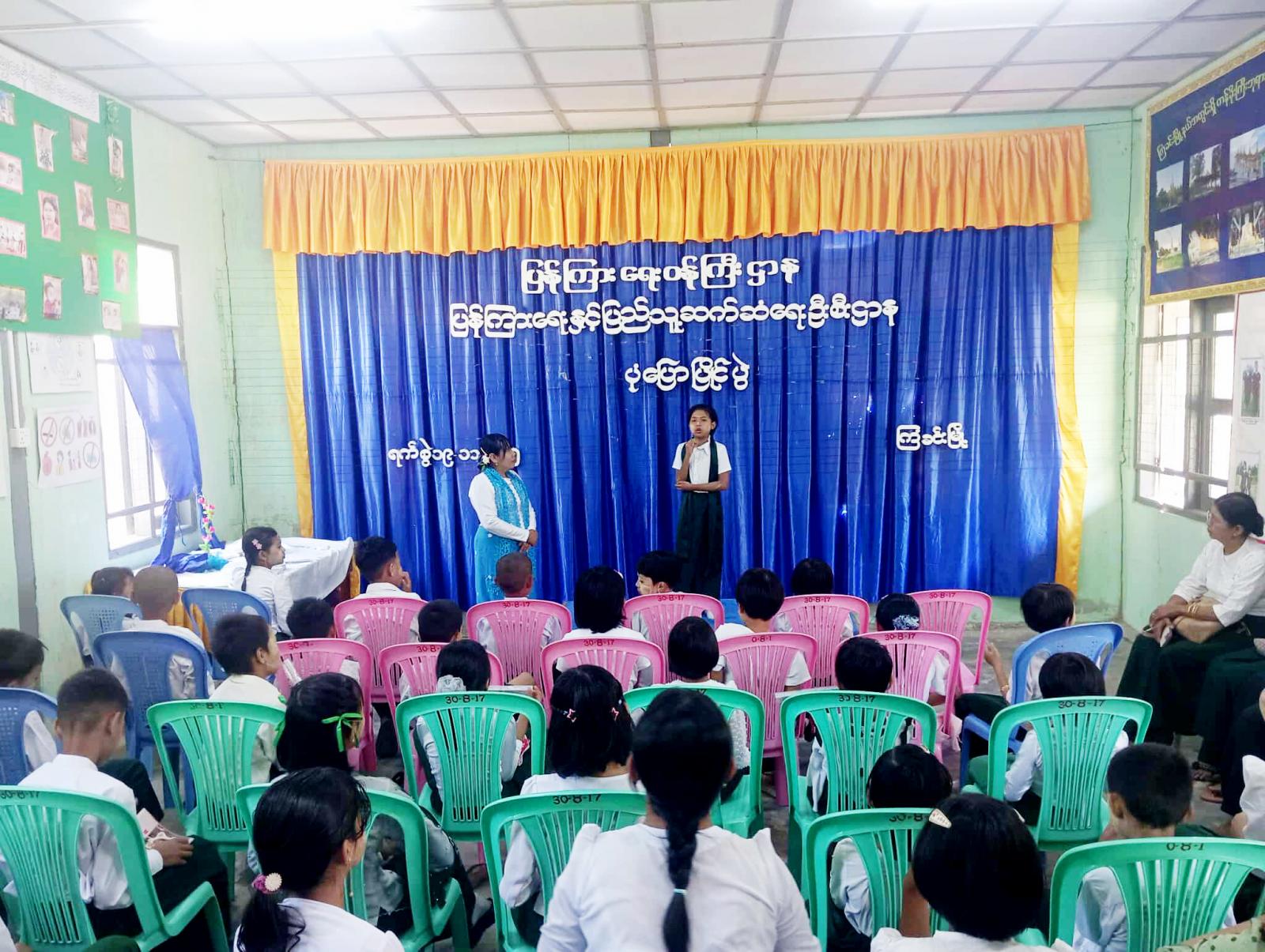 ဆက်လက်၍ ကဗျာရွတ်ပြိုင်ပွဲ၊ ပုံပြောပြိုင်ပွဲ၊ ဉာဏ်စမ်းပဟေဠိပြိုင်ပွဲများကို ကျင်းပရာ ကျောင်းသား၊ ကျောင်းသူ ၄၅ ဦးက သက်ဆိုင်ရာ ပြိုင်ပွဲခေါင်းစဉ်များအလိုက် ဝင်ရောက်ယှဉ်ပြိုင်ကြပြီး ပြိုင်ပွဲများတွင် ဝင်ရောက်ယှဉ်ပြိုင်ကြသော ကျောင်းသား၊ ကျောင်းသူများအား မြို့နယ်ဦးစီးမှူး ဒေါ်ခင်မိုးမြင့်က အမှတ်တရ လက်ဆောင်ပစ္စည်းများ ပေးအပ်ကြသည်။