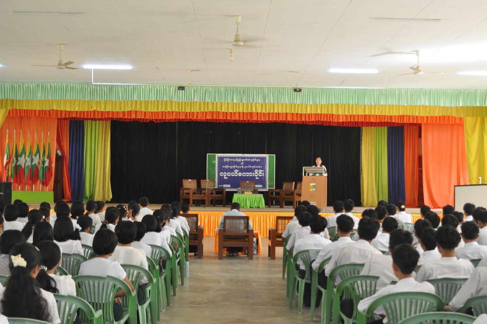 မကွေးတိုင်းဒေသကြီး၊ အောင်လံခရိုင်၊ အောင်လံမြို့နယ် အမှတ်(၁) အခြေခံပညာ အထက်တန်းကျောင်း ရွှေရတုခန်းမ၌ ပြန်ကြားရေးနှင့်ပြည်သူ့ဆက်ဆံရေးဦးစီးဌာနနှင့် အခြေခံပညာဦးစီးဌာနတို့ ပူးပေါင်းကျင်းပသော လူငယ်စကားဝိုင်းကို ယမန်နေ့နေ့လယ် ၁ နာရီက ကျင်းပခဲ့သည်။