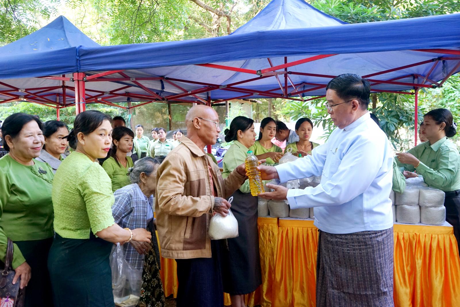 တိုင်းဒေသကြီးဝန်ကြီးချုပ်နှင့် တာဝန်ရှိသူများသည် မကွေးမြို့ မြန်မာ့စီးပွားရေးဘဏ်တွင် နိုင်ငံ့ဝန်ထမ်း(အငြိမ်းစား)များအား တိုင်းပြည်သူ့ဆေးရုံကြီး အထူးကုဆရာဝန်ကြီးများမှ အခမဲ့ဆေးကုသဆောင်ရွက်နေမှုအား လှည်လည်ကြည့်ရှု၍ ဆေးဝါးကုသမှုခံယူနေသူ နိုင်ငံ့ဝန်ထမ်း (အငြိမ်းစား)များအား တိုင်းဒေသကြီးဝန်ကြီးချုပ်က ရင်းရင်းနှီးနှီးတွေ့ဆုံအားပေးသည်။ ထို့နောက် နိုင်ငံ့ဝန်ထမ်း(အငြိမ်းစား) တစ်ဦးလျှင် ဆန်တစ်ပြည်၊ ဆီ(၅၀)ကျပ်သားနှုန်းဖြင့် မြို့နယ်အတွင်းရှိ အငြိမ်းစားဝန်ထမ်း ၄၀၀၀ ကျော်ကို အခမဲ့ ချီးမြှင့်ပေးနေမှုအား ကြည့်ရှုအားပေးကာ မြန်မာ့စီးပွားရေးဘဏ်ဝန်ထမ်းများအား ဂုဏ်ပြု ချီးမြှင့်ငွေများ ပေးအပ်ခဲ့သည်။