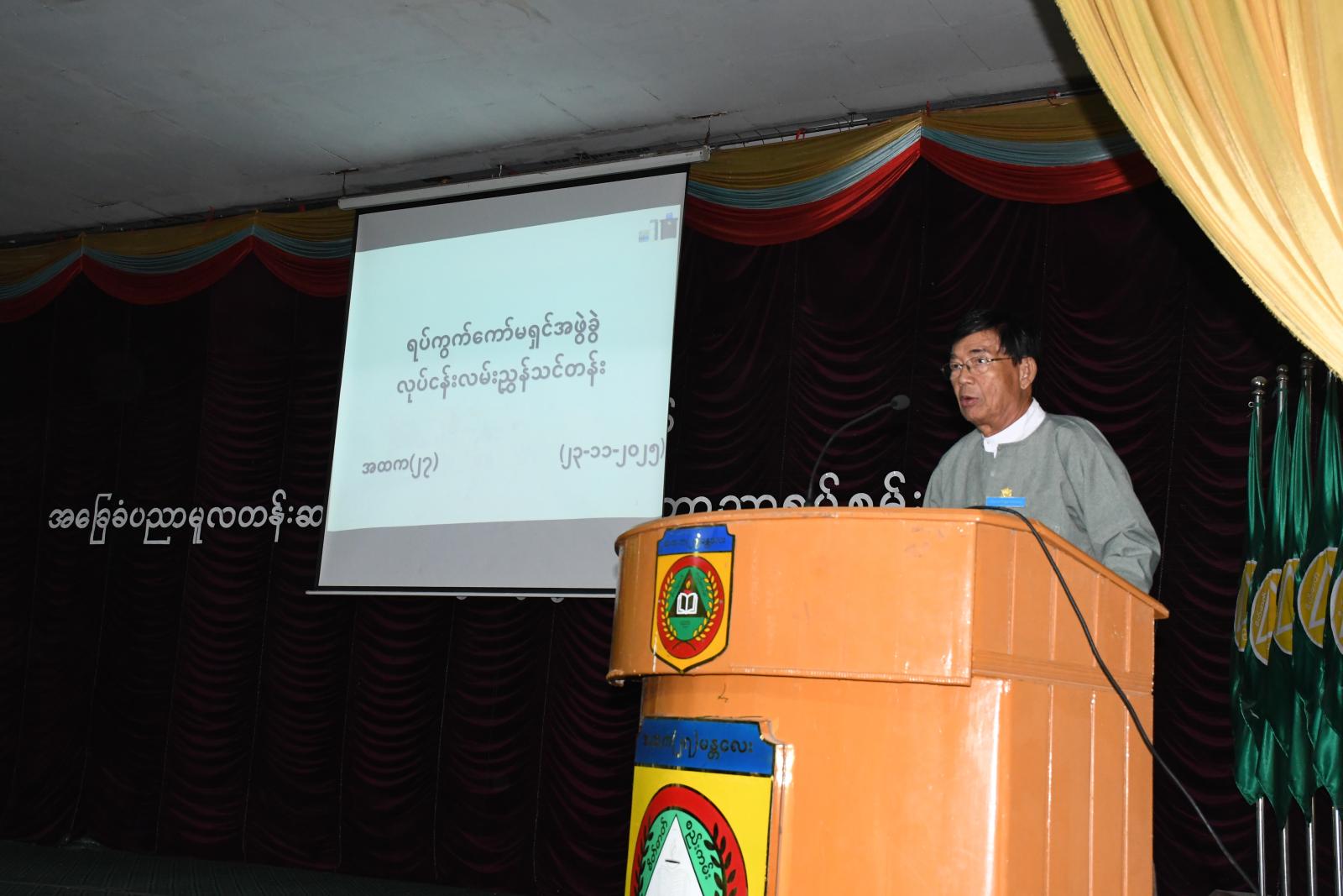 ယင်းနောက် ပြည်ကြီးတံခွန်မြို့နယ်၊ မြို့နယ်ဥပဒေအရာရှိ ဦးရန်လင်းအောင်က လွှတ်တော်နည်းဥပေဒေအကြောင်းများ ရှင်းလင်းပြောကြားခဲ့ပြီး ခရိုင်ရွေးကောက်ပွဲအဖွဲ့ဝင်(၁) ဦးသန်းကြွယ်က ရပ်ကျေးကော်မရှင်လုပ်ငန်းလမ်းညွှန်အကြောင်း ရှင်းလင်းပြောကြားခဲ့သည်။ ဆက်လက်ပြီး မြို့နယ်ရွေးကောက်ပွဲကော်မရှင် ရွေးကောက်ပွဲအရာရှိ ဦးမင်းစိုးနိုင်က ရွေးကောက်ပွဲစနစ်အကြောင်း၊ မဲပေးစက်တည်ဆောက်ပုံနည်းလမ်းများ၊ စက်တပ်ဆင်ပုံ၊ စမ်းသပ်မဲပေးပုံ၊ ရွေးကောက်ပွဲနေ့တွင်မဲရုံ၌ စက်တပ်ဆင်ခင်းကျင်းပုံ၊ မဲရလဒ်ရေတွက်ပုံ၊ နည်းဥပဒေပါအတိုင်း မဲရလဒ်စာရင်းပြုစုပုံနှင့် ရွေးကောက်ပွဲဆိုင်ရာသိသင့်သိထိုက်သိများကို ဥပဒေ၊ နည်းဥပဒေ၊ လုပ်ငန်းလမ်းညွှန်ချက်များနှင့်အညီ သင်တန်းသား/သင်တန်းသူများကို သင်ကြားပို့ချပေးသွားမည်ဖြစ်ကြောင်း ရှင်းလင်းပြောကြားခဲ့ သည်။
