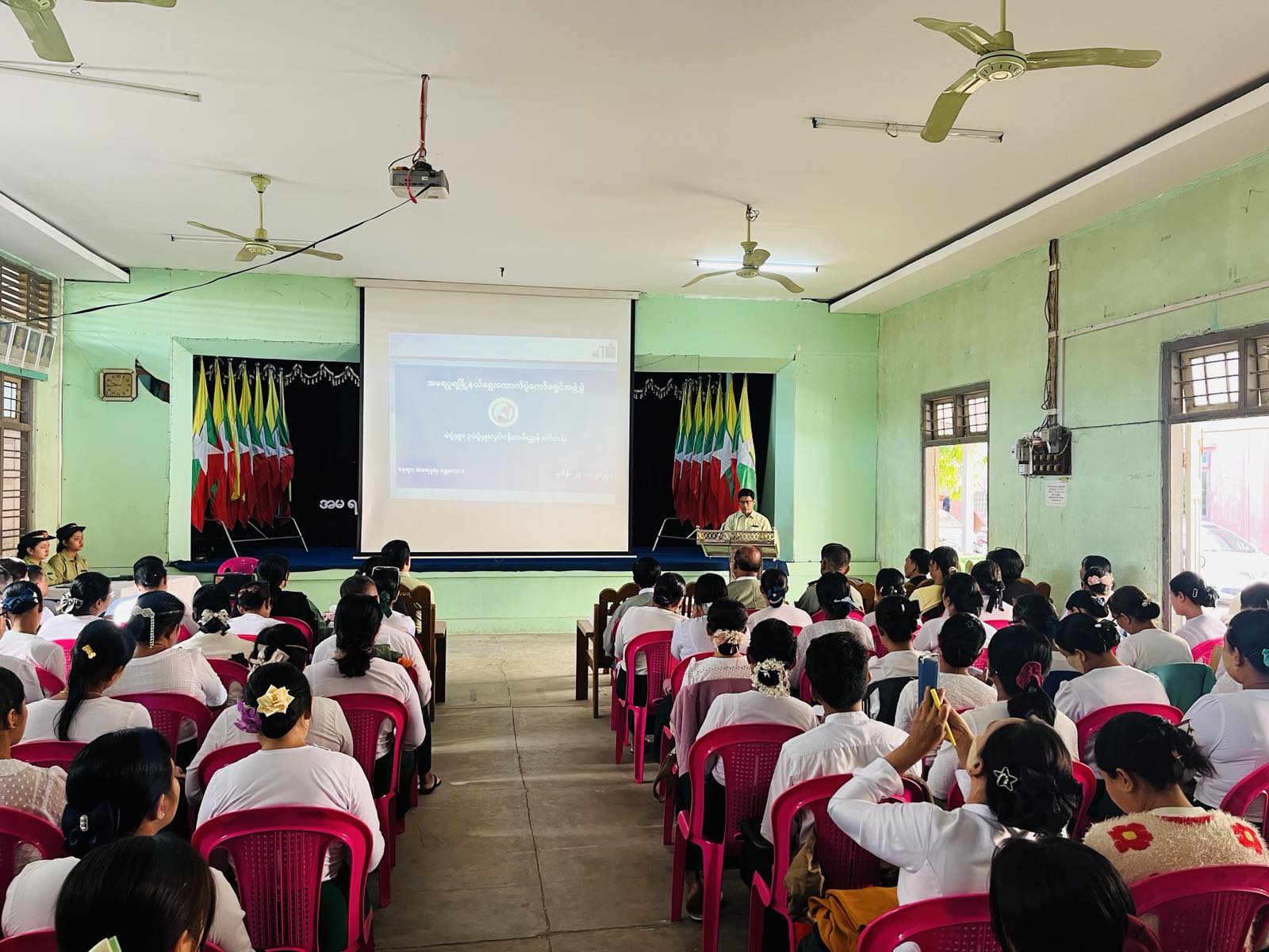 ယနေ့ဖွင့်လှစ်သော မဲရုံမှူး၊ဒုမဲရုံမှူး လုပ်ငန်းလမ်းညွှန်သင်တန်း ပထမရက်တွင် မြို့နယ်ဥပဒေအရာရှိ ဒေါ်ခင်သီတာထွေးက လွှတ်တော်ရွေးကောက်ပွဲ ဥပဒေများ အကြောင်း ရှင်လင်းပြောကြားသည်။