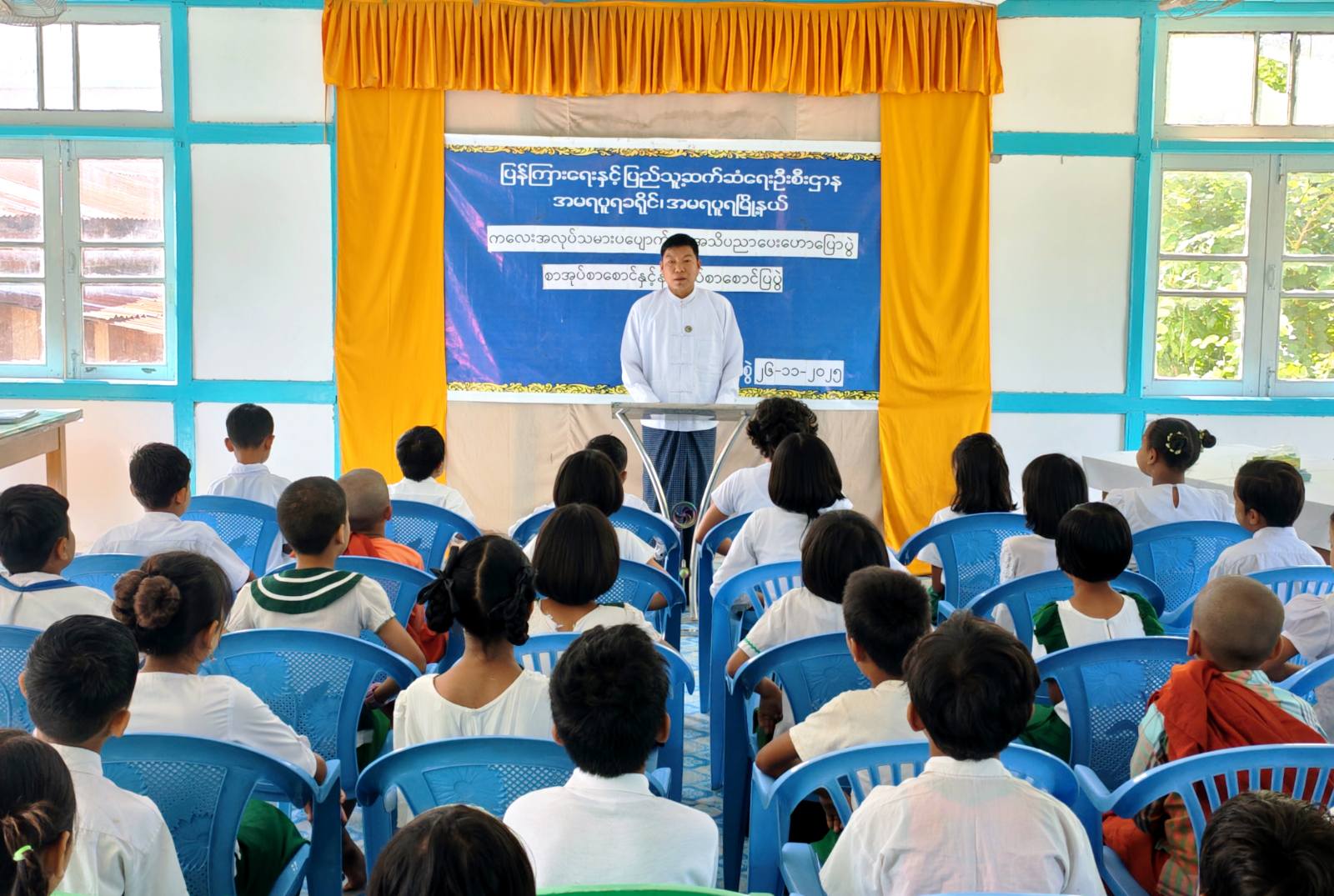 ဦးစွာ ပြန်ကြားရေးနှင့်ပြည်သူ့ဆက်ဆံရေးဦးစီးဌာနမှ ဦးစီးအရာရှိ ဦးမျိုးမင်းက အသိပညာပေးဟောပြောပွဲ ကျင်းပပြုလုပ်ရခြင်း ရည်ရွယ်ချက်များကို ရှင်းလင်းပြောကြားခဲ့ပြီး ကျောင်းသား၊ကျောင်းသူလေးများအား ကလေးအလုပ်သမားဖြစ်ရခြင်းအကြောင်းအရင်းများ၊ ကလေးအလုပ်သမားဟူသည်၊ ကလေးအလုပ်သမားရင်ဆိုင်ရခြင်း၊ အလုပ်ရှင်များ၏ တုံ့ပြန်ချက်များနှင့်စိစစ်ခြင်းများနှင့် ကလေးအလုပ်သမားပပျောက်ရေးရည်မှန်းချက်(၃)ရပ်စသည့် အကြောင်းအရာများကို အသိပညာပေးဟောပြော ဆွေးနွေးခဲ့သည်။
