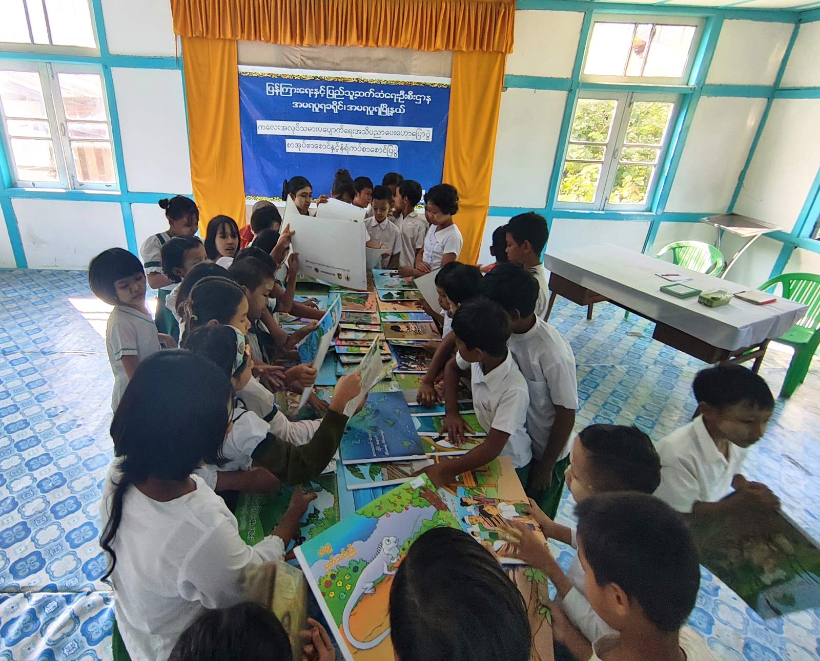 ထို့နောက် ဟောပြောပွဲသို့တက်ရောက်လာကြသည့် ကျောင်းသား၊ကျောင်းသူလေးများက ခင်းကျင်းပြသထားသည့် စာအုပ်စာစောင်များနှင့်နံရံကပ်စာစောင်များကို စိတ်ပါဝင်စားစွာကြည့်ရှုခဲ့ကြပြီး ကလေးအလုပ်သမားပပျောက်ရေးအသိပညာပေး လက်ကမ်းစာစောင်များကို ဖြန့်ဝေပေးခဲ့ကြောင်း သိရသည်။