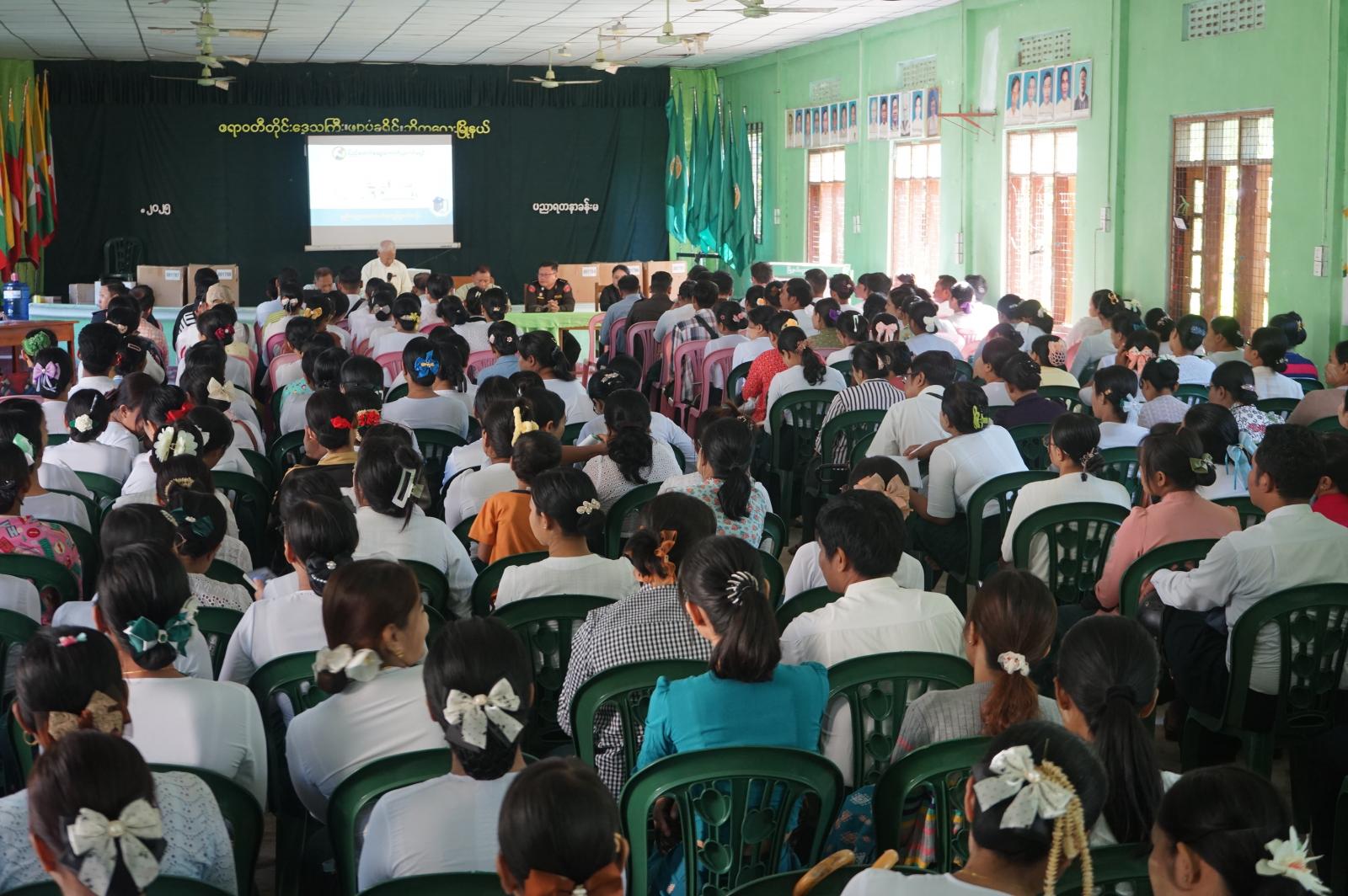 အဆိုပါ သင်တန်းဖွင့်ပွဲသို့ မြို့နယ်စီမံခန့်ခွဲရေးနှင့် အုပ်ချုပ်ရေးကော်မတီဥက္ကဋ္ဌ၊ ဦးဇော်ဝင်းလှိုင်နှင့် ကော်မတီဝင်များ၊ မြို့နယ်ရွေးကော်ပွဲ ကော်မရှင်အဖွဲ့ခွဲဥက္ကဋ္ဌ ဦးခင်မောင်ရင်နှင့် အဖွဲ့ဝင်များ၊ ဌာနဆိုင်ရာများ၊ မဲရုံတာဝန်ထမ်းဆောင်ကြမည့် ပညာရေးဝန်ထမ်းများ အင်အား(၂၀၀)ကျော်တက်ရောက်ကြပြီး မြို့နယ်စီမံခန့်ခွဲရေးနှင့် အုပ်ချုပ်ရေးကော်မတီဥက္ကဋ္ဌ၊ ဦးဇော်ဝင်းလှိုင်က ယခုသင်တန်းတွင် မဲပေးစက်များ တပ်ဆင်ခြင်း၊ လွှတ်တော်အလိုက် မဲပေးစက်များအား SD ကဒ်များ ထည့်သွင်းခြင်း၊ စတေကာတပ်ဆင်ခြင်း စသော နည်းပညာများအား စနစ်တကျ ပို့ချမည်ဖြစ်ပြီး မဲရုံတာဝန်ထမ်းဆောင်ကြမည့် ဆရာ/မများ အနေဖြင့် ရွေးကောက်ပွဲ အောင်မြင်စွာ ကျင်းပနိုင်ရေးအတွက် စိတ်စေတနာ အပြည့်အဝဖြင့် ပူးပေါင်းပါဝင်ဆောင်ရွက်ကြရန် အမှာစကားပြောကြားသည်။