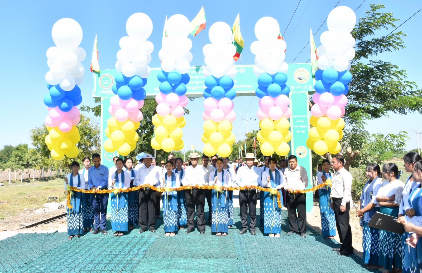 ဦးစွာ ကတ္တရာလမ်းသစ်ဖွင့်ပွဲ အခမ်းအနားသို့ တက်ရောက်လာကြသည့် ပြည်ထောင်စုဝန်ကြီး နှင့်တကွ တာဝန်ရှိသူများအား နန္ဒာမြောက် အ.လ.က ကျောင်းမှ ကျောင်းသားကျောင်းသူများနှင့် ဒေသခံပြည်သူများက ကြိုဆိုနှုတ်ဆက်ခဲ့ကြသည်။ ထို့နောက် ကတ္တရာလမ်းသစ်အား ပြည်ထောင်စုဝန်ကြီး ဦးလှမိုး၊ မန္တလေးတိုင်းဒေသကြီး အစိုးရအဖွဲ့ဝင်လမ်းပန်းဆက်သွယ်ရေးရာဝန်ကြီး ဦးအောင်ဇော်ဦး၊ အမြဲတမ်းအတွင်းဝန် ဦးခန့်ဇော်၊ ကျေးလက်လမ်းဖွံ့ဖြိုးရေးဦးစီးဌာန ဒုတိယညွှန်ကြားရေးမှူးချုပ် ဒေါက်တာထွန်းမြင့်အောင်နှင့် တိုင်းဒေသကြီး ညွှန်ကြားရေးမှူး(မြို့ပြ) ဦးကျော်ဇေယျာဝင်းတို့က ဖဲကြိုးဖြတ်ဖွင့်လှစ်ပေးကြပြီး၊ အမှတ်တရစုပေါင်းဓာတ်ပုံ ရိုက်ကူးခဲ့ကြသည်။