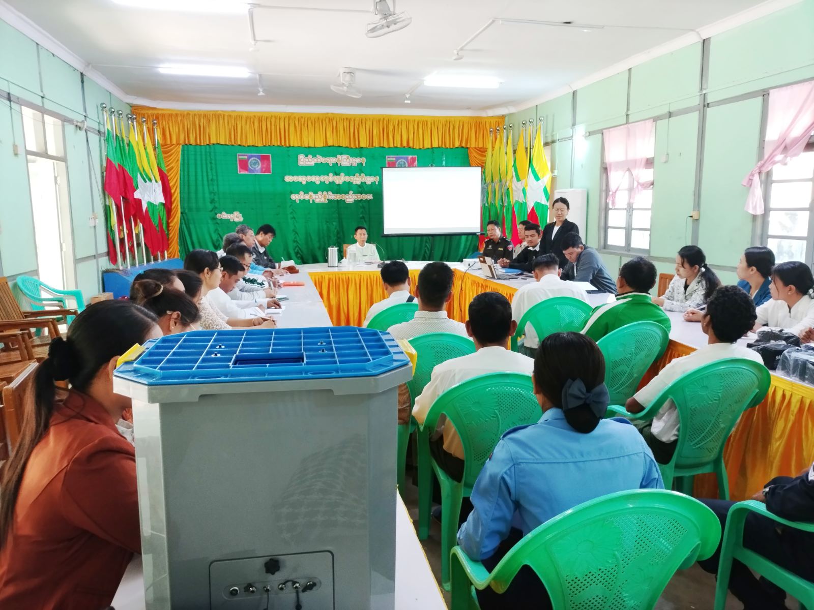 မကွေးတိုင်းဒေသကြီး၊ သရက်ခရိုင်၊ မင်းလှမြို့နယ်တွင် ပါတီစုံအထွေထွေရွေးကောက်ပွဲ မဲပေးနိုင်ရေးအတွက် ရွေးကောက်ပွဲကော်မရှင်အဖွဲ့ခွဲရုံးမှ အီလက်ထရောနစ်မဲပေးစက်နည်းပညာ အထောက်အကူသင်တန်းကို ယနေ့နံနက် ၁၀ နာရီက မြို့နယ်အထွေထွေအုပ်ချုပ်ရေးဦးစီးဌာန အစည်းအဝေးခန်းမ၌ ကျင်းပပြုလုပ်ခဲ့သည်။