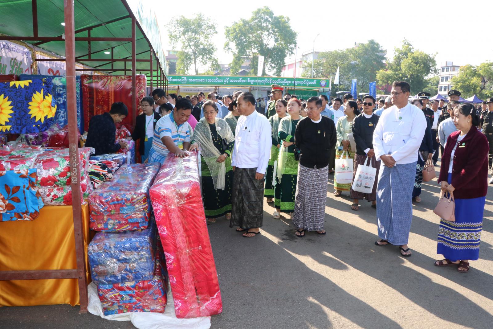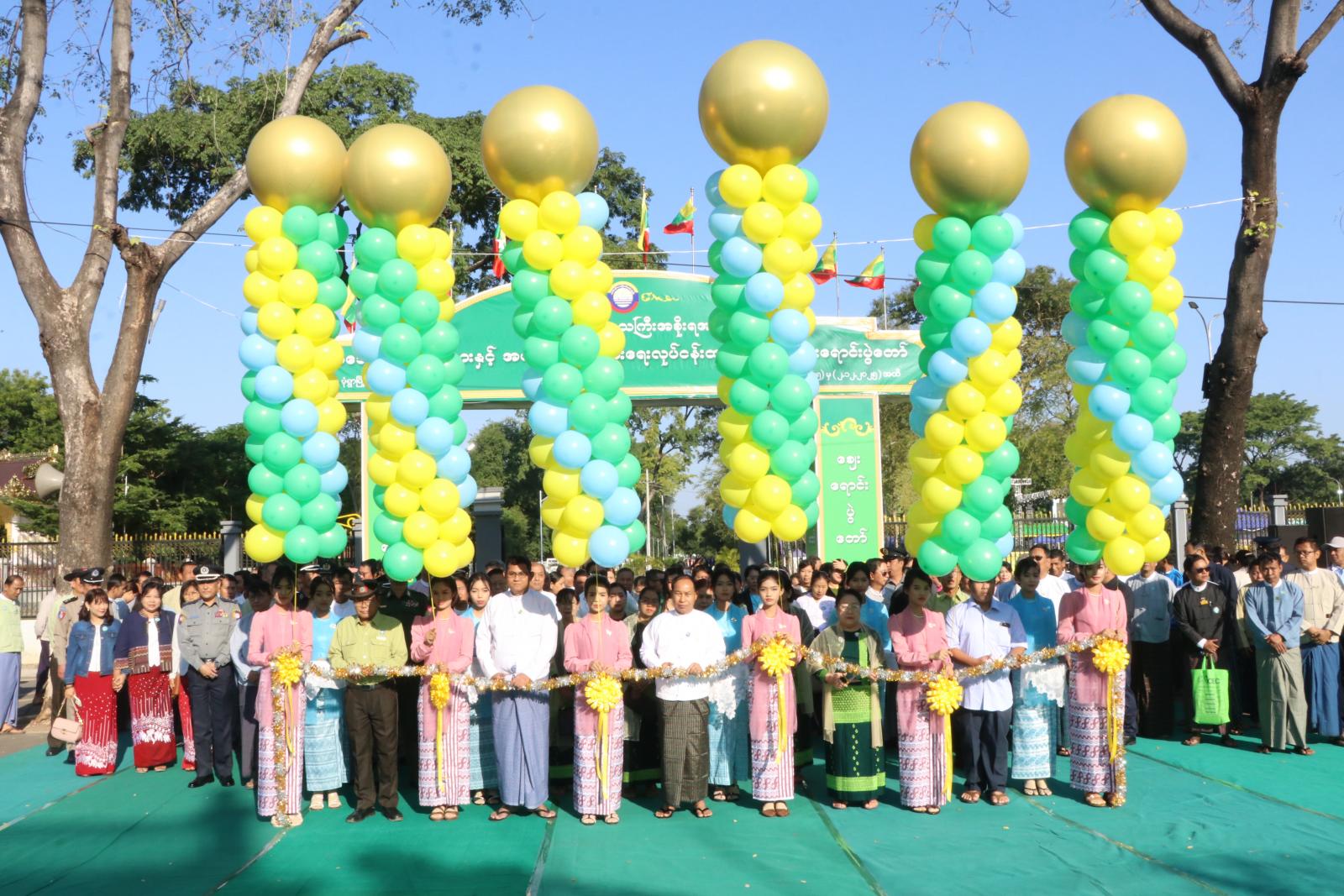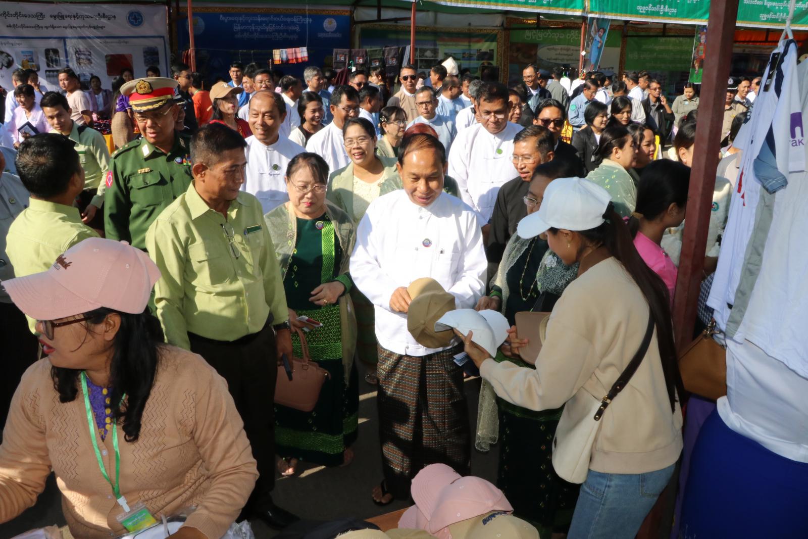 ယင်းနောက် တိုင်းဒေသကြီး ဝန်ကြီးချုပ်ဦးမြတ်ကျော်၊ တိုင်းဒေသကြီး စီးပွားရေးရာဝန်ကြီး ဒေါ်ရီရီသန်း၊ မုံရွာခရိုင် စီမံခန့်ခွဲရေးနှင့်အုပ်ချုပ်ရေးကော်မတီဥက္ကဋ္ဌ ဦးကိုကိုလွင်၊ တိုင်းဒေသကြီး MSME အေဂျင်စီ အတွင်းရေးမှူး ဦးစိုးနိုင်၊ ဆီကုန်သည်ကြီးများအသင်းဥက္ကဋ္ဌ ဦးကျော်မင်းထက်တို့က အသေးစား၊အငယ်စားနှင့် အလတ်စား စီးပွားရေးလုပ်ငန်းထုတ်ကုန်များ ဈေးရောင်းပွဲတော်အား ဖဲကြိုးဖြတ် ဖွင့်လှစ်ပေးကြသည်။