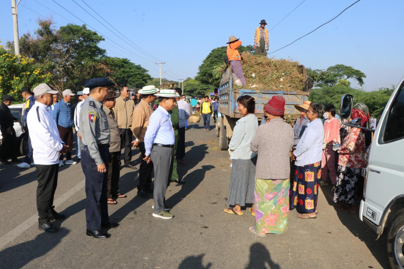 ထို့နောက် တိုင်းဒေသကြီး ဝန်ကြီးချုပ်နှင့် တာဝန်ရှိသူများက စုပေါင်းသန့်ရှင်းရေး လုပ်ငန်းများဆောင်ရွက်ခဲ့ကြသည့် ဌာနဆိုင်ရာများမှဝန်ထမ်းများနှင့် ရပ်ကွက်နေပြည်သူများအား တိုင်းဒေသကြီး စားသုံးသူရေးရာဦးစီးဌာနနှင့် ဆီကုန်သည်ကြီးများအသင်းမှ စား သုံးဆီများအား ဈေးနှုန်းသက်စွာဖြင့်ရောင်းချပေးနေမှုများအား ကြည့်ရှုအားပေးခဲ့ကြပြီး သန့်ရှင်းရေးလုပ်ငန်းများဆောင်ရွက်ခဲ့ကြသူများအား နံနက်စာများဖြင့် ဧည့်ခံကျွေးမွေးခဲ့ကြသည်။