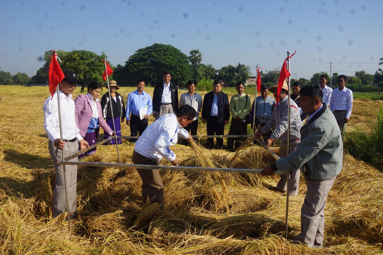 အဆိုပါ မိုးစပါး စံကွက်ရိတ်သိမ်းပွဲသို့ မန္တလေးတိုင်းဒေသကြီး၊ ကြေးတိုင်နှင့်မြေစာရင်းဦးစီးဌာန၊ တိုင်းဒေသကြီးဦးစီးမှူး ဦးချစ်ကိုကို၊ အမရပူရခရိုင် စိုက်ပျိုးရေးကြီးကြပ်ကော်မတီဝင် ဌာနဆိုင်ရာအကြီးအကဲများနှင့် ဖိတ်ကြားထားသောတောင်သူများ တက်ရောက်ခဲ့ကြသည်။ တက်ရောက်လာသော ဌာနဆိုင်ရာများနှင့် တောင်သူများကို မြေစာရင်းဦးစီးဌာန၊ ဦးစီးမှူး ဦးဆယ်တင်က ဧရာမင်း မိုးစပါးပန်းတိုင်အထွက်နှုန်း ရရှိရေးဆောင်ရွက်ထားမှုအခြေအနေများကို ရှင်းလင်းပြောကြားခဲ့သည်။ ယခုရိတ်သိမ်းသော မိုးစံပါး စံကွက်တွင်ကောင်းကိုယ်စားပြုတစ် ဧကအစိုတင်း ၁၁၅ဒသမ၈၅ တင်းထွက်ရှိကြောင်း သိရသည်။