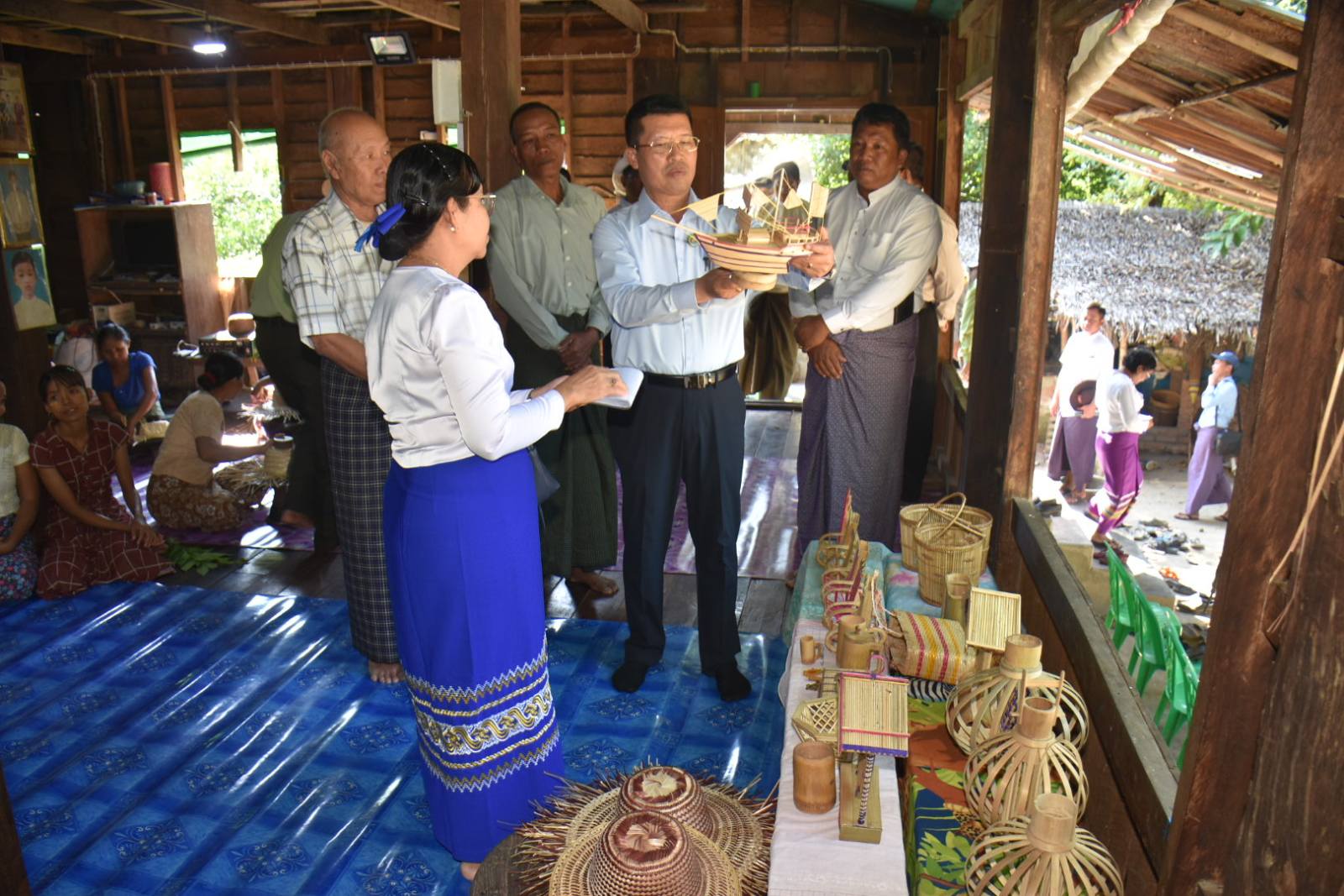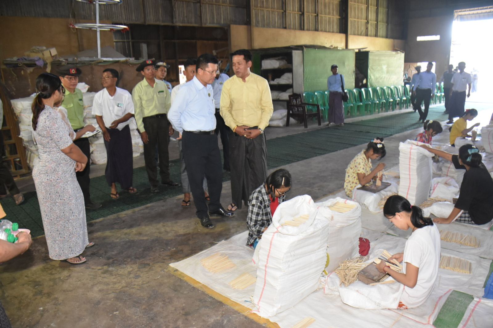 ထို့နောက် ငါးသိုင်းချောင်းမြို့ရှိ ဝင်းဧရာဝါးတူစက်ရုံသို့သွားရောက်၍ ဝါးတူထုတ်လုပ်မှုအဆင့်ဆင့်တို့အား သွားရောက်ကြည့်ရှုအားပေးခဲ့ရာ ဝါးကုန်ကြမ်းေရွးချယ်ခြင်း၊ ဖြတ်တောက်ခြင်း၊ ပုံကြမ်းထုတ်ခြင်း၊ ပေါင်းဖိုဖြင့်ပိုးသတ်ခြင်း၊ အခြောက်ခံခြင်း၊ ပုံချောထုတ်ခြင်း၊ ပုံဖော်စက်ဖြင့် ပုံချောဖော်ခြင်း၊ အရည်အသွေးကောင်းမွန်သည့် တူချောများအား ၂ချောင်းတစ်စုံဖြင့် ထုတ်ပိုးခြင်းနှင့် အထုတ်(၅၀)ပါကင်များ ထုတ်ပိုးခြင်းဆောင်ရွက်နေမှုများအား ကြည့်ရှုစစ်ဆေးခဲ့ရာ တာဝန်ရှိသူများမှ လုပ်ငန်းဆောင်ရွက်မှုအဆင့်ဆင့်နှင့် ကုန်ကြမ်းရရှိမှု၊ ကုန်ချောထုတ်လုပ်နိုင်မှုနှင့် ရောင်းချရမှုအခြေအနေများရှင်းလင်းတင်ပြမှုခဲ့ရာ တိုင်းဒေသကြီးဝန်ကြီးချုပ်မှ ကုန်ထုတ်လုပ်ငန်းများ ပိုမိုတိုးတက်ထုတ်လုပ်နိုင်ရေး၊ ခေတ်မီစက်ပစ္စည်းများအသုံးပြုနိုင်ရေးနှင့် လုပ်ငန်းခွင်အန္တရာယ်ကင်းရှင်းရေးအ လေးထားဆောင်ရွက်ရန်မှာကြားခဲ့သည်။ အဆိုပါ ဝင်းဧရာဝါးတူစက်ရုံမှ တစ်နေ့လျှင် ပျမ်းမျှ ဝါးတူအထုတ်(၅၀)ပါ ပါကင် (၇၀) ထုတ်အားတိုင်းဒေသကြီးအတွင်းနှင့် အခြားတိုင်းဒေသကြီးများသို့ ထုတ်လုပ်တင်ပို့ရောင်းချလျက်ရှိကြောင်းသိရသည်။