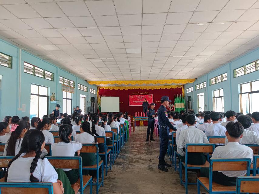 အဆိုပါ ဟောပြာပွဲတွင် မြို့နယ်မီးသတ်ဦးစီးမှူးဦးမျိုးမြင့်စိုးက မီးဘေးအန္တရာယ်ကြိုတင်ကာကွယ်တားစီးရေးနှင့်ပတ်သက်၍ ဆောင်ရန်/ရှောင်ရန်အချက်အလက်များနှင့် မီးဘေးအန္တရာယ်ကြုံတွေ့လာပါက မီးသတ်ဆေးဘူးဖြင့်မီးငြှိမ်းသတ်ရာ၌ မီးသတ်ဆေးဘူးအားအသုံးပြုနည်းများအား စနစ်တကျ ရှင်းလင်းပြောကြားခဲ့ပြီး အသိပညာပေးလက်ကမ်းစာစောင်များအား ကျောင်းသား၊ ကျောင်းသူများ၏ လက်ဝယ်အရောက်ဖြန့် ဝေပေးခဲ့သည်။