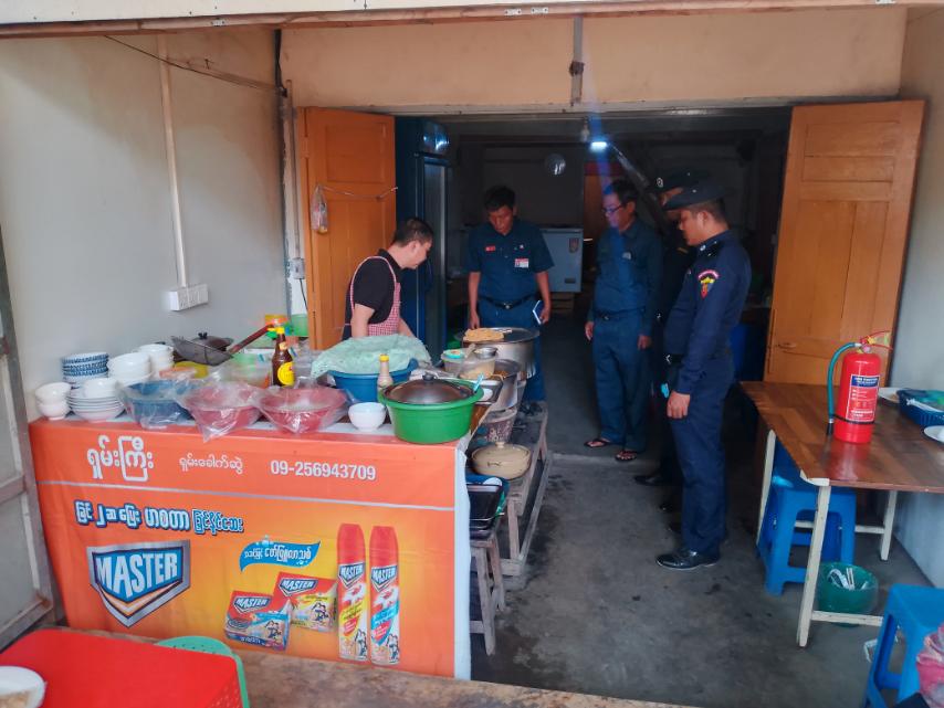 အဆိုပါ မီးဘေးလုံခြုံရေးကွင်းဆင်းစစ်ဆေးခြင်းကို မြို့နယ်မီးသတ်စခန်းမှ လက်ထောက်မီးသတ်ဦးစီးမှူး ဦးဇော်မျိုးထွန်း ဦးဆောင်၍ သန္ဓေတပ်ဖွဲ့ဝင်များ၊ အရန်မီးသတ်တပ်ဖွဲ့ဝင်များ၊ မြို့နယ်စည်ပင်သာယာရေးအဖွဲ့မှ ဌာနစုမှူး ဦးအောင်သန်းဦးနှင့် စျေးတာဝန်ခံအရာရှိများပူးပေါင်း၍ စစ်ဆေးခြင်း၊ ဈေးအတွင်း ရေရှိရေးနှင့် မီးသတ်ယာဉ် ဝင်/ထွက်သွားလာနိုင်သည့် လမ်းကြောင်းများအား လိုက်လံကြည့်ရှု့စစ်ဆေးခြင်း၊ ဈေးသူ/ ဈေးသားများအား မီးဘေးလုံခြုံရေးအသိပညာပေး လက်ကမ်းစာစောင်များ ဖြန့်ဝေခြင်းများ ဆောင်ရွက်ခဲ့ကြောင်း သိရသည်။
