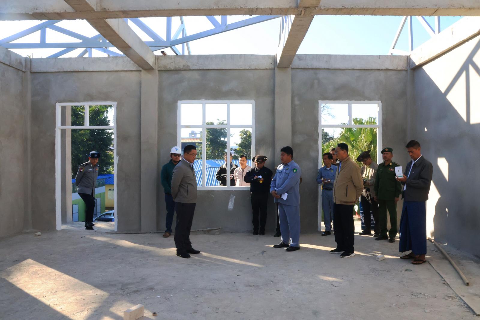 ထို့နောက် ပြည်နယ်ဝန်ကြီးချုပ်နှင့် တာဝန်ရှိသူများသည် ပြည်နယ်စည်ပင်သာယာ ရုံးဝင်းအတွင်း ပြည်နယ်ငွေလုံးငွေရင်းရန်ပုံငွေဖြင့် ဆောင်ရွက်နေသည့် ၁၀၂ ပေ x ၃၆ ပေ နှစ်ထပ်သံကူကွန်ကရစ် လွိုင်ကော်မြို့နယ်စည်ပင်သာယာရေးအဖွဲ့ရုံး အဆောက်အအုံ တည်ဆောက်နေမှုကို ကြည့်ရှုစစ်ဆေးသည်။