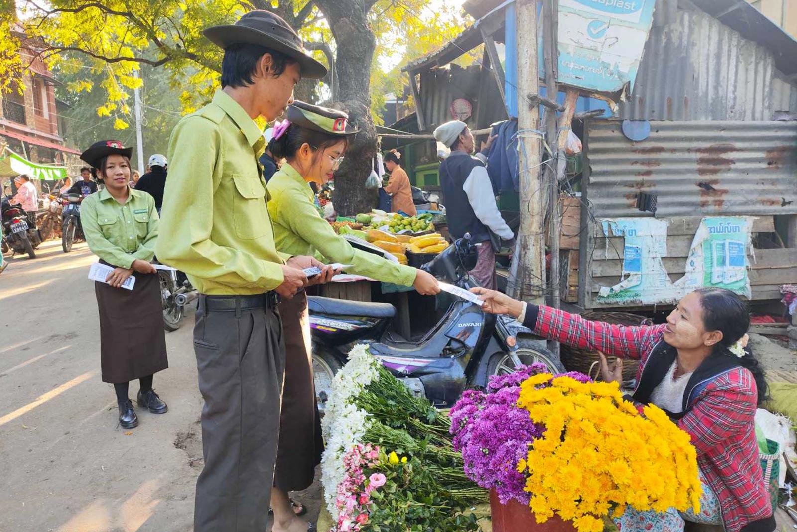 ၂၀၂၅ ခုနှစ် ပါတီစုံဒီမိုကရေစီအထွေထွေရွေးကောက်ပွဲတွင် အသက် ၁၈ နှစ်နှင့်အထက် မဲပေးပိုင်ခွင့်ရှိသည့် နိုင်ငံသားတိုင်း နိုင်ငံသားအခွင့်အရေး မဆုံးရှုံးစေရန် ဆန္ဒမဲပေးနိုင်ရေးအတွက် “ဒို့အတူမဲပေးကြမယ်” လက်ကမ်းစာစောင်များကို လမ်းသွားလမ်းလာ ဖြတ်သန်းသွားလာကြသည့် ဒေသခံပြည်သူများနှင့် ခရီးသွားပြည်သူများထံသို့ မြို့နယ်စီမံခန့်ခွဲရေးနှင့်အုပ်ချုပ်ရေးကော်မတီဥက္ကဋ္ဌ ဦးစိုးထွဋ်နှင့်အဖွဲ့ဝင်များ၊ မြို့နယ်ရွေးကောက်ပွဲကော်မရှင်အဖွဲ့ခွဲဥက္ကဋ္ဌ ဦးဇော်မင်းသန်းနှင့်အဖွဲ့ဝင်များ၊ ခရိုင် ပြန်ကြားရေးနှင့်ပြည်သူ့ဆက်ဆံရေးဦးစီးဌာန ဦးစီးအရာရှိ ဦးထိန်လင်းနှင့်ဝန်ထမ်းများ၊ ရပ်ကွက်စာရေးဝန်ထမ်းများက ဖြန့်ဝေပေးခဲ့ပြီး အဆိုပါလက်ကမ်းစာစောင် အစောင်ရေ ၃၀၀၀ စောင်ကို ဖြန့်ဝေပေးခဲ့ကြောင်း သိရသည်။