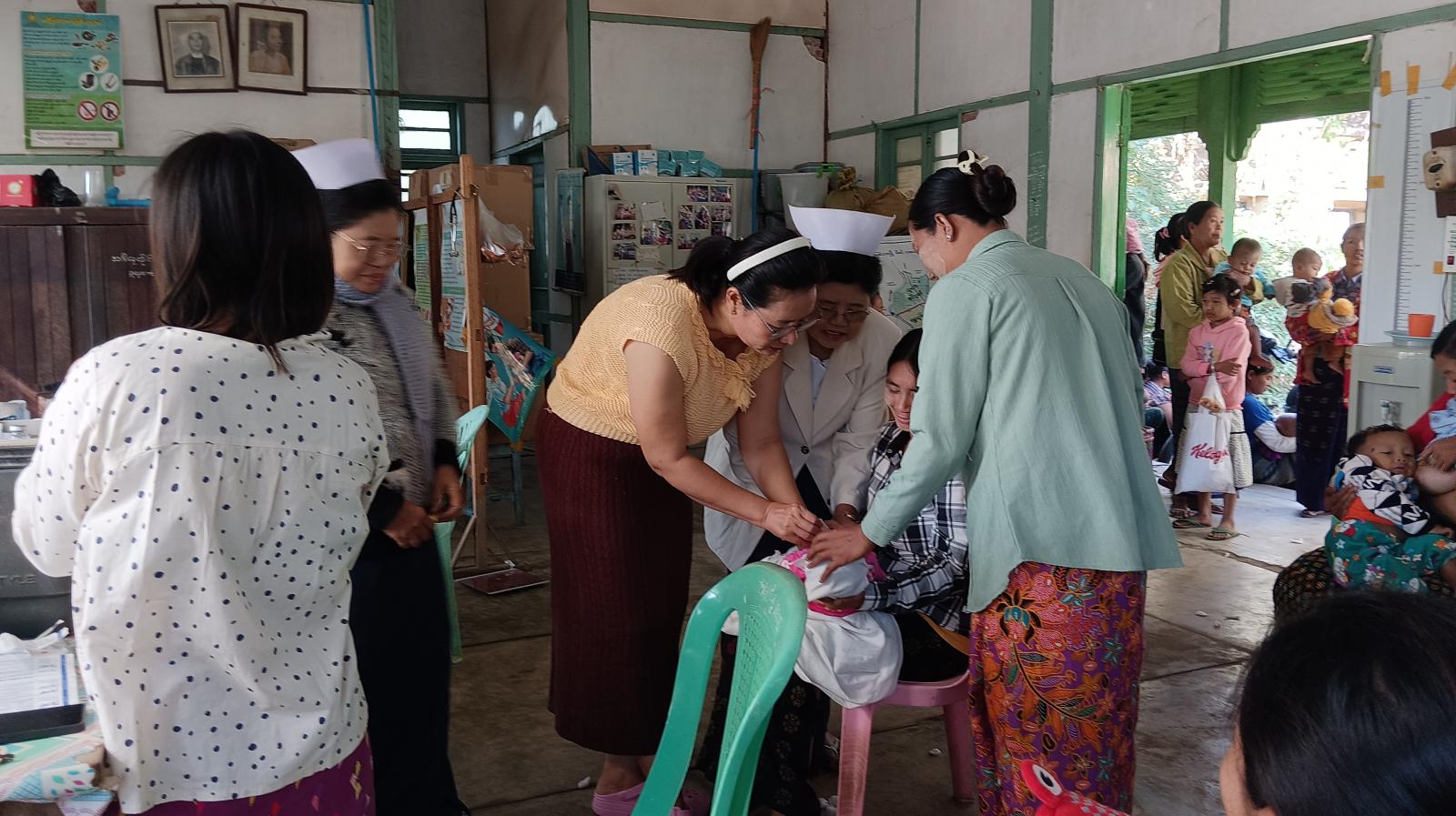 မြို့နယ်မိခင်နှင့်ကလေးကျန်းမာရေးဌာနမှ ကျန်းမာရေးဆရာမများနှင့်သားဖွားဆရာမတို့က ကိုယ်ဝန်ဆောင်မိခင်များနှင့် မွေးကင်းစမှ (၁) နှစ်ခွဲအောက်ကလေးငယ်များအား လစဉ်သတ်မှတ်ရက်များတွင် ကာကွယ်ဆေးများကို ဆက်လက်ထိုးနှံတိုက်ကျွေးပေးသွားမည်ဖြစ်ကြောင်း မြို့နယ်မိခင်နှင့်ကလေးကျန်းမာရေးဌာန တာဝန်ရှိသူတစ်ဦးထံမှ သိရသည်။
