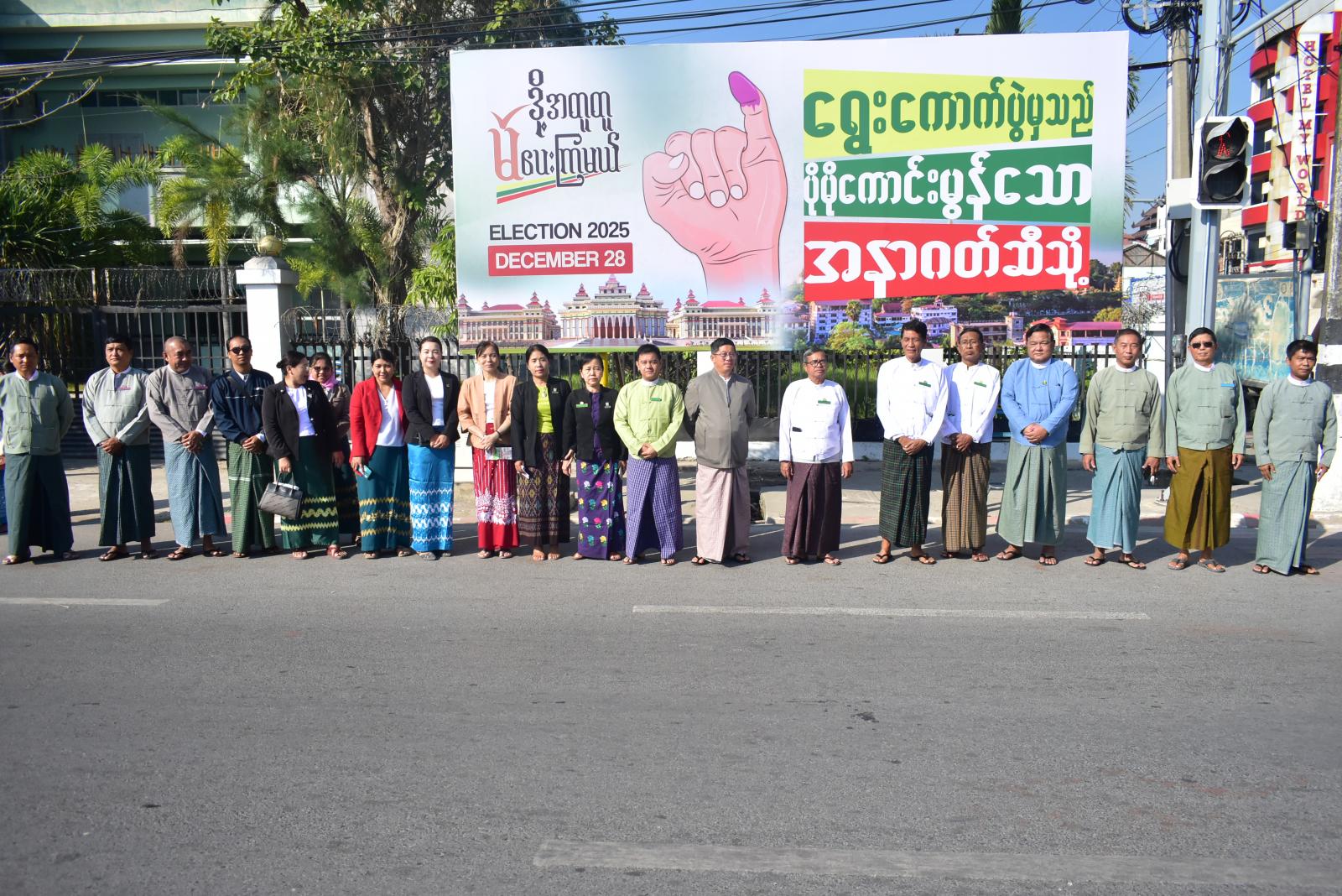 ၂၀၂၅ ခုနှစ်၊ ဒီဇင်ဘာလ ၂၈ ရက်နေ့တွင် ကျင်းပမည့် ပါတီစုံဒီမိုကရေစီ အထွေထွေရွေးကောက်ပွဲကာလတွင် ဆန္ဒမဲပေးပိုင်ခွင့်ရှိသည့် ပြည်သူများ နိုင်ငံသားအခွင့်အရေးမဆုံးရှုံးစေရန် “ဒို့အတူမဲပေးကြမယ်” မြေစိုက်ပိုစတာများကို ချမ်းအေးသာစံမြို့နယ်အတွင်းရှိ လူစည်ကားသည့်နေရာများ၌ ယနေ့နံနက်ပိုင်းက စိုက်ထူခဲ့ကြသည်။
