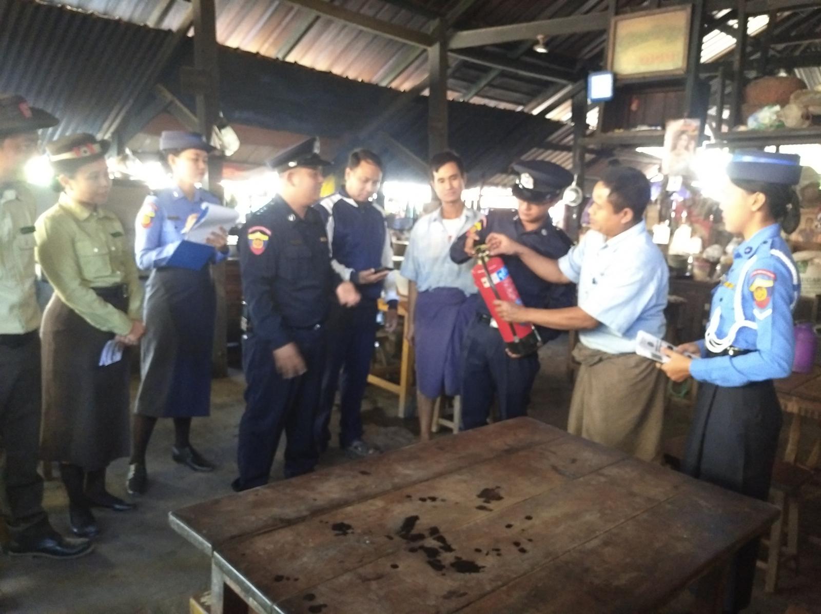 အဆိုပါဆောင်ရွက်ရာသို့ တံတားဦးမြို့နယ် မီးသတ်ဦးစီးဌာန ဦးစီးအရာရှိ ဦးကျော်သူအောင်နှင့်တပ်ဖွဲ့ဝင်များ၊ မြို့နယ်စည်ပင်သာယာ ရေးအဖွဲ့အမှုဆောင်အရာရှိ ဦးကျော်မင်းမပ်းထွန်းနှင့် ဝန်ထမ်းများ၊ မြို့နယ်လျှပ်စစ်ဝန်ထမ်းများ ပူပေါင်းဆောင်ရွက်ကြသည်။ မီးဘေးလုံခြုံရေးအတွက် ကွင်းဆင်းဆောင်ရွက်ရာတွင် မြို့နယ်မီးသတ်ဦးစီးဌာန ဦးစီးအရာရှိက မြိုမဈေးအတွင်း မီးလောင်မှု၊ မီးလန့်မှုမဖြစ်ပွားစေရေး၊ မီးဘေးလုံခြုံရေး ကြိုတင်ကာကွယ်ရေးအတွက် မီးသတ်ဆေးဘူးများ၊ မီးချိတ်၊ မီးကတ်၊ ရေကန်များနှင့် အရေးပေါ်မီးငြိမ်းသတ်ရေးပစ္စည်းများ အသင့်ရှိရေး၊ မီးသတ်ဆေးဘူး ကိုင်တွယ်အသုံးပြုပုံများကို မီးအသုံးပြုကြသည့် ဈေးဆိုင်များအားဟောပြောပြီး၊ အသိပညာပေး လက်ကမ်းစာစောင်များ အခမဲ့ဖြန့်ဝေခြင်းနှင့် မြို့မဈေးအတွင်း အရေးပေါ်မီးသတ်ယာဉ်များ ဝင်/ထွက်သွားလာနိုင်သည့် လမ်းကြောင်းများကြည့်ရှုစစ်ဆေးခြင်းနှင့် ဈေးဆိုင်များ၊ ဈေးရုံများအား မီးဘေးကြိုတင် ကာကွယ်ရေးများကို လိုက်လံကြည့်ရှုစစ်ဆေးကြသည်။