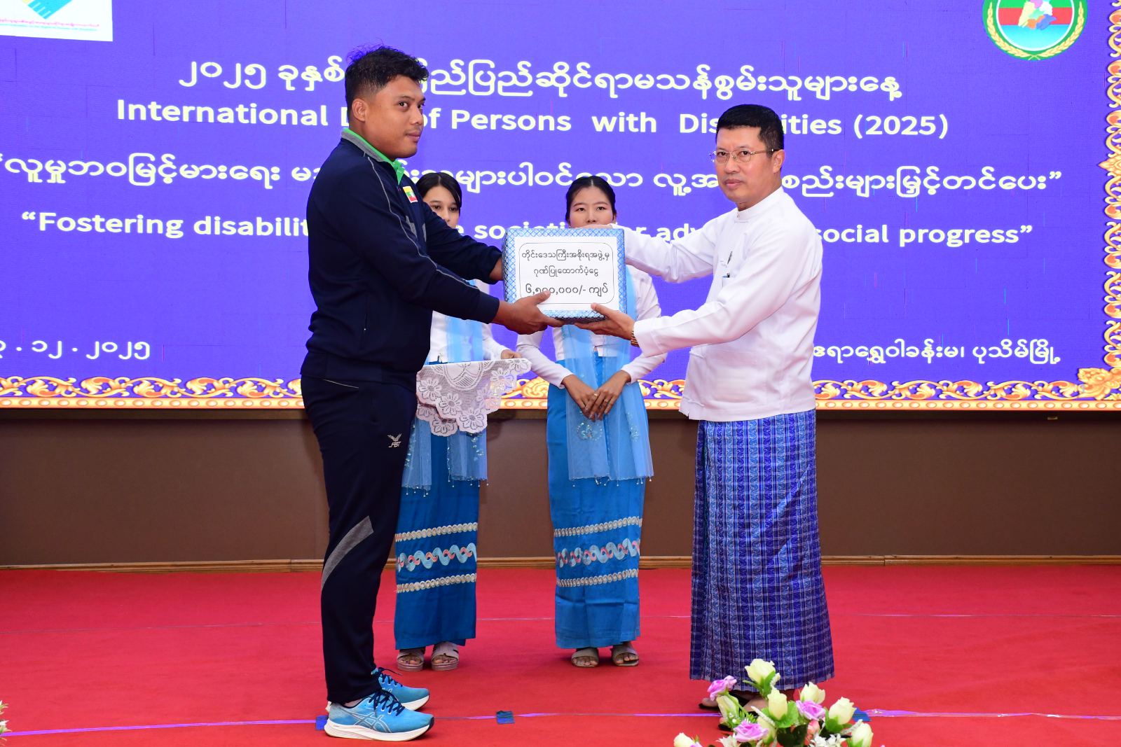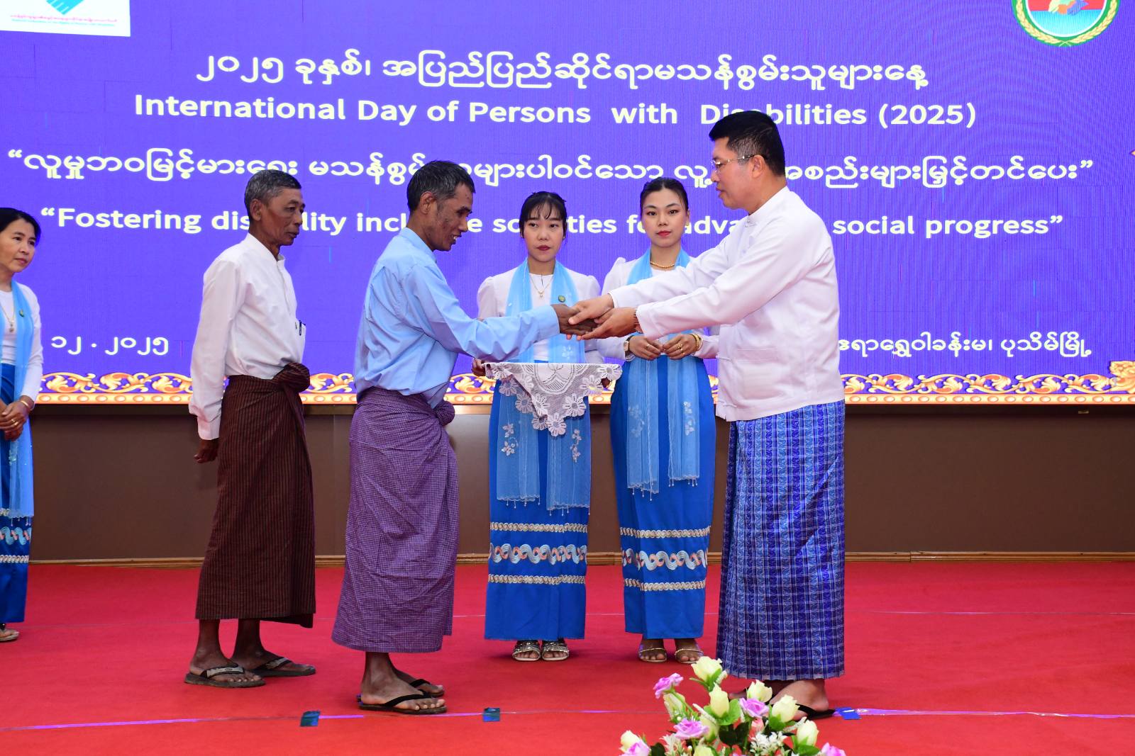 ၂၀၂၅ ခုနှစ်၊ အပြည်ပြည်ဆိုင်ရာမသန်စွမ်းစွမ်းသူများနေ့ အထိမ်းအမှတ်အခမ်းအနားကို ယမန်နေ့နံနက်ပိုင်းက ပုသိမ်မြို့၊ ဧရာရွှေဝါခန်းမတွင်ပြုလုပ်ခဲ့ရာ အခမ်းအနားသို့ တိုင်းဒေသကြီးဝန်ကြီးချုပ် ဦးတင်မောင်ဝင်းနှင့်ဇနီး၊ အစိုးရအဖွဲ့ဝင်ဝန်ကြီးများနှင့် ၎င်းတို့၏ဇနီးများ၊ ဌာနဆိုင်ရာများ၊ လူမှုရေးအသင်းအဖွဲ့များနှင့် မသန်စွမ်းသူများတက်ရောက်ခဲ့ကြသည်။