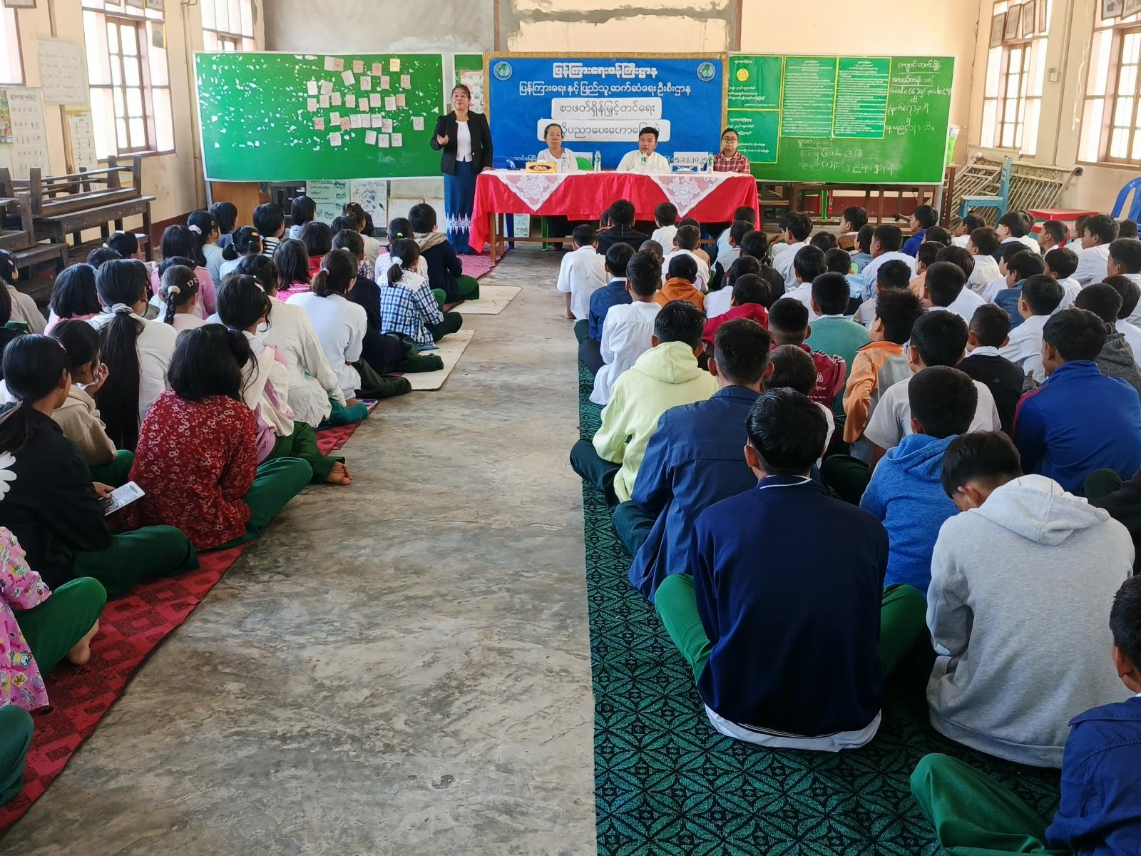 ဆက်လက်၍ မြို့နယ်ပြန်ကြားရေးနှင့်ပြည်သူ့ဆက်ဆံရေးဦးစီးဌာန ဒုတိယဦးစီးမှူး ဒေါ်မြင့်မြင့်သွယ်က လူငယ်များအတွက် ပညာ၏တန်ဖိုးနှင့်စာဖတ်ခြင်း၏ အကျိုးကျေးဇူးများကို ဟောပြောခဲ့သည်။