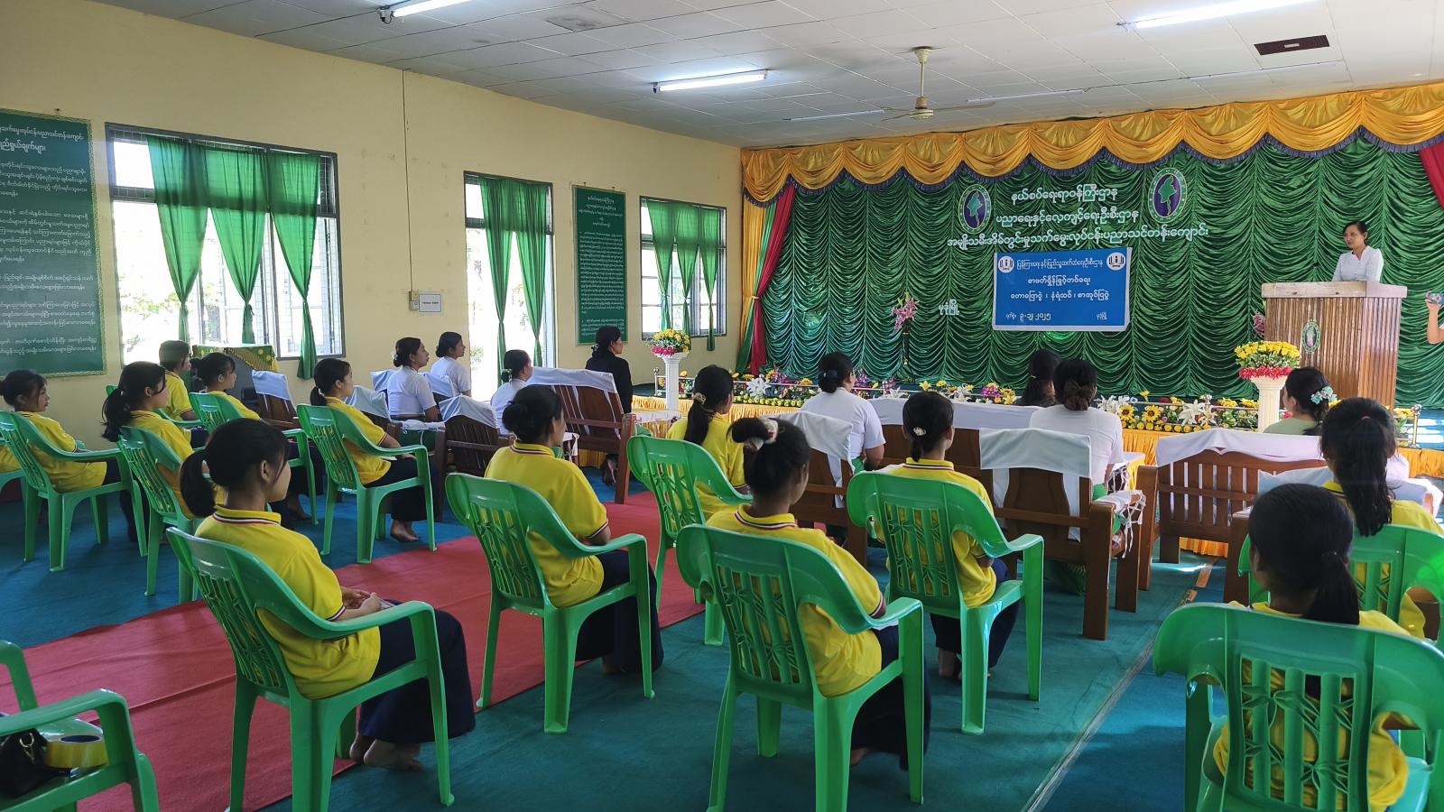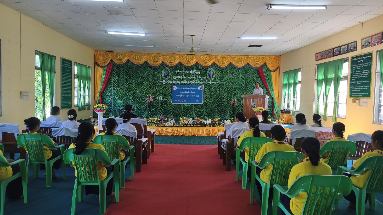 ဦးစွာ ကျောင်းအုပ်ဆရာမကြီး ဒေါ်ညိုညိုရှိန်က အမှာစကားပြောကြားပြီး မုဒုံမြို့နယ် ပြန်ကြားရေးနှင့်ပြည်သူ့ဆက်ဆံရေးဦးစီးဌာနမှ ဦးစီးအရာရှိ ဒေါ်မိုးမိုးစန္ဒာထွန်းက သင်တန်းသူများ အသိပညာဗဟုသုတများ ပြည့်စုံစေရန်နှင့် စာဖတ်ရှိန်မြင့်မားစေရေးအတွက် ပြင်ပစာပေများဖြစ်သည့် သုတ၊ ရသ စသည့် စာအုပ်စာစောင်များကို လေ့လာဖတ်ရှုကြရန်နှင့် အကျိုးအကြောင်း၊ အဆိုးအကောင်းများကို ဝေဖန်ပိုင်းခြားနိုင်ရေးအတွက် စာပေများ ဖတ်ရှုလေ့လာကြရန် ပြောကြားသည်။ ထို့နောက် စားသုံးသူကာကွယ်ရေး အကြောင်းအရာများ၊ ကလေးအလုပ်သမားပပျောက်ရေး အသိပညာပေးခြင်းနှင့် လူကုန်ကူးမှုအန္တရာယ်အကြောင်းအရာများကို ရှင်းလင်း ပြောကြားခဲ့သည်။