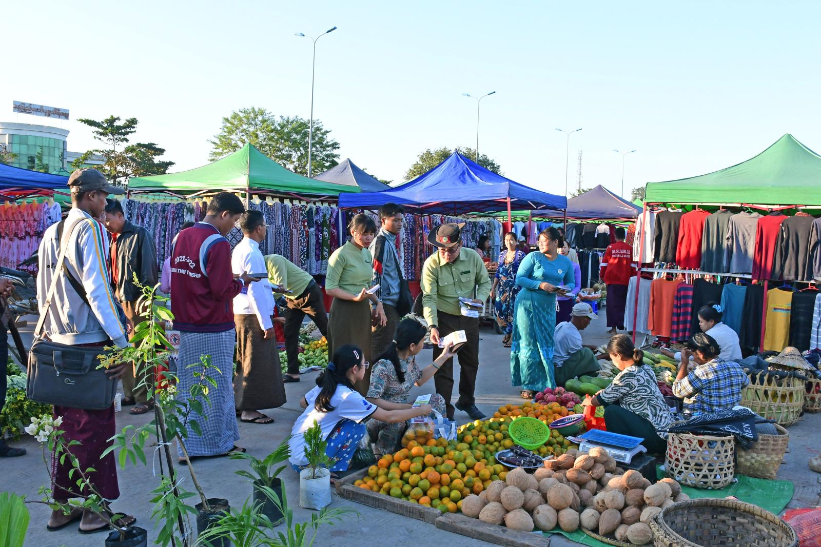 ထိုသို့ဆောင်ရွက်ရာတွင် မြို့နယ်စီမံခန့်ခွဲရေးနှင့်အုပ်ချုပ်ရေးကော်မတီအဖွဲ့ဝင် ဦးသန်းငွေ၊ မြို့နယ်အထွေထွေအုပ်ချုပ်ရေးဦးစီးဌာနမှ ဒုတိယမြို့နယ်အုပ်ချုပ်ရေးမှူး ဦးဇေယျာထွန်း၊ မြို့နယ်အဆင့်ဌာနဆိုင်ရာများ၊ မြို့နယ်မိခင်နှင့်ကလေးစောက်ရှောက်ရေးအသင်း၊ မြို့နယ်အမျိုးသမီးရေးရာအဖွဲ့တို့ပူးပေါင်း၍ ပုဗ္ဗသီရိညဈေးရှိ ဈေးရောင်း၊ ဈေးဝယ်ပြည်သူများအား ရွေးကောက်ပွဲမှသည်ပိုမိုကောင်းမွန်သော အနာဂတ်ဆီသို့၊ ဒီမိုကရေစီကိုပြန်လည်ဖော်ဆောင်ဖို့အတွက် ရွေးကောက်ပွဲမှလွဲ၍ အခြားနည်းမရှိပါ၊ ပြည်သူများလိုလားသည့် ဒီမိုကရေစီနိုင်ငံတော်ကို ရွေးကောက်ပွဲဖြင့်သာ ဖော်ဆောင်နိုင်ပါသည်၊ ဒီမိုကရေစီခိုင်မြဲဖို့ မဲရုံသွားပြီးမဲပေးကြပါစို့၊ နိုင်ငံဖွံ့ဖြိုးတိုးတက်ဖို့ ဦးဆောင်နိုင်သူရွေးချယ်ကြပါစို့ဟူသောအချက်များပါရှိသည့် အသိပညာပေး လက်ကမ်းစာစောင်များ အခမဲ့ဖြန့်ဝေပေးခဲ့ကြောင်း သိရသည်။