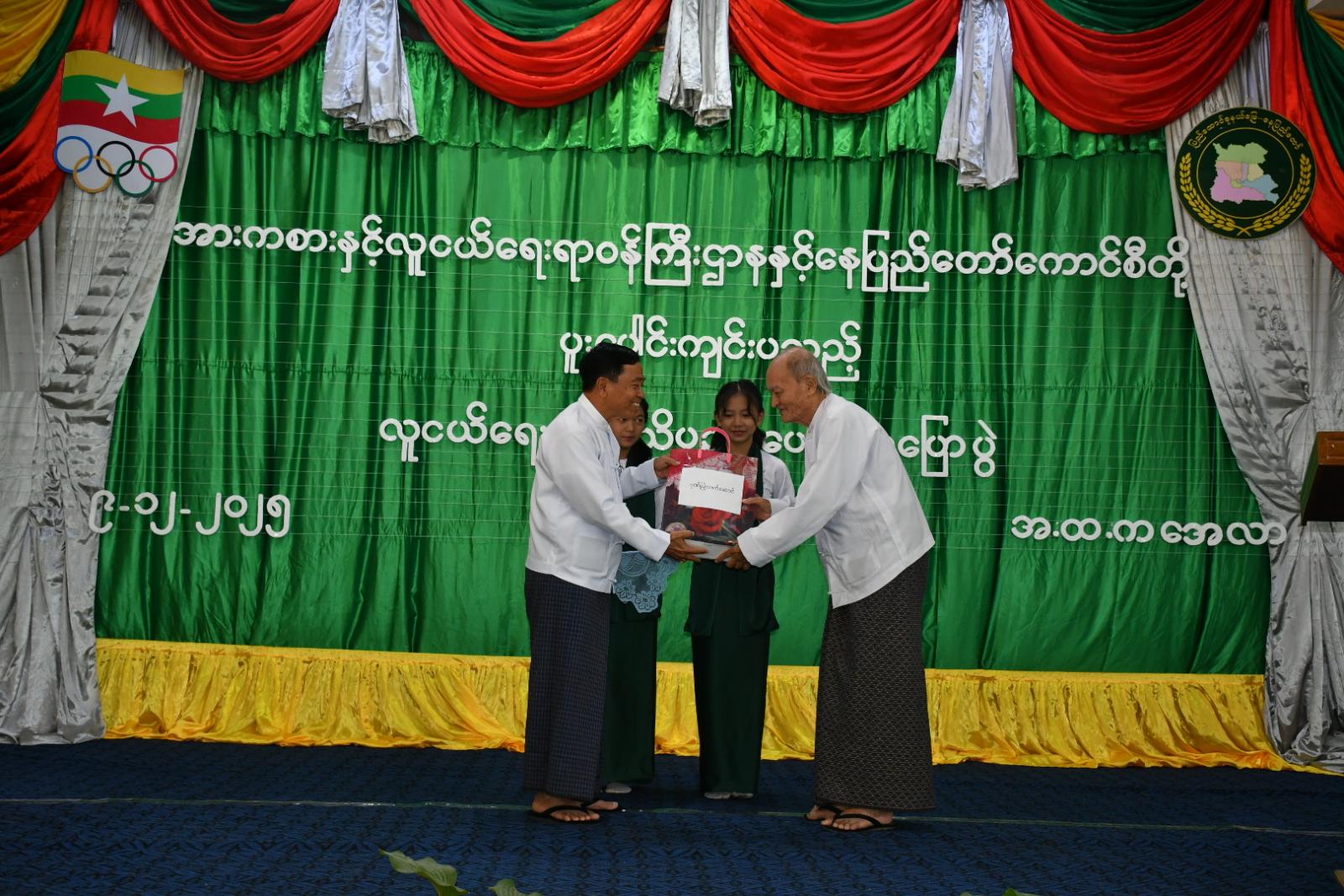 ဆက်လက်၍ နေပြည်တော်ကောင်စီဥက္ကဋ္ဌ ဦးသန်းထွန်းဦးက အမျိုးသားစာပေဆုရ စာရေးဆရာ အောင်စိုး(တိရိစ္ဆာန်ဆေးကုဆရာဝန်) ဂုဏ်ပြုလက်ဆောင်ပေးအပ်ခဲ့ပြီး အေလာမြို့အခြေခံပညာအထက်တန်းကျောင်းအတွက် အလှူငွေများပေးအပ်ရာ ကျောင်းအုပ်ဆရာမကြီးမှ လက်ခံခဲ့သည်။ ထို့နောက် လူငယ်ရေးရာဝန်ကြီးဌာန ဒုတိယဝန်ကြီး ဦးဇင်မင်းထက်က အမှာစကားပြောကြားခဲ့ပြီး အေလာမြို့ အခြေခံပညာအထက်တန်းကျောင်းသို့ အားကစားပစ္စည်းများပေးအပ်လှူဒါန်းရာ ကျောင်းအုပ်ဆရာမကြီးမှ လက်ခံရယူခဲ့သည်။