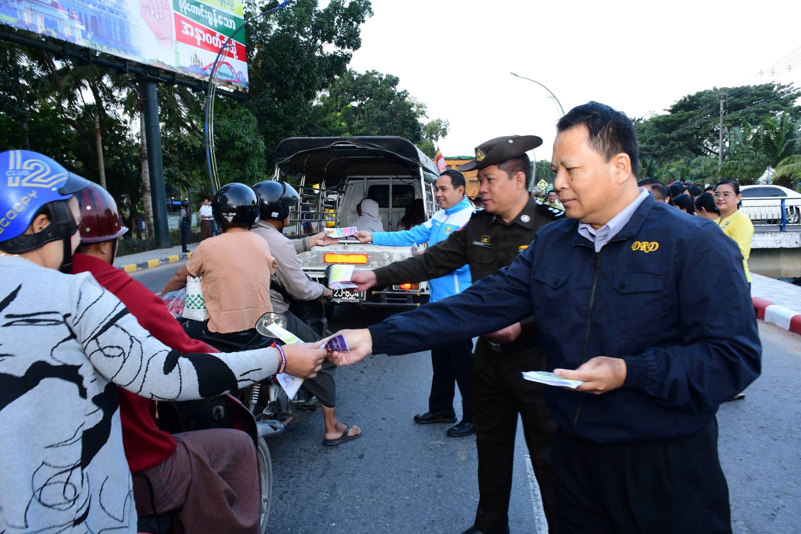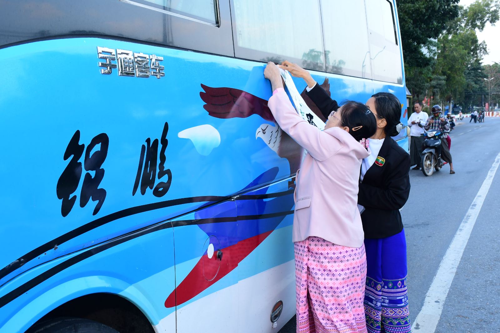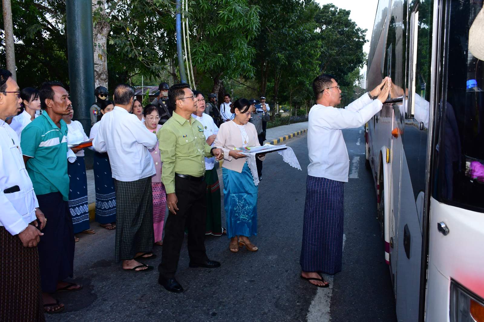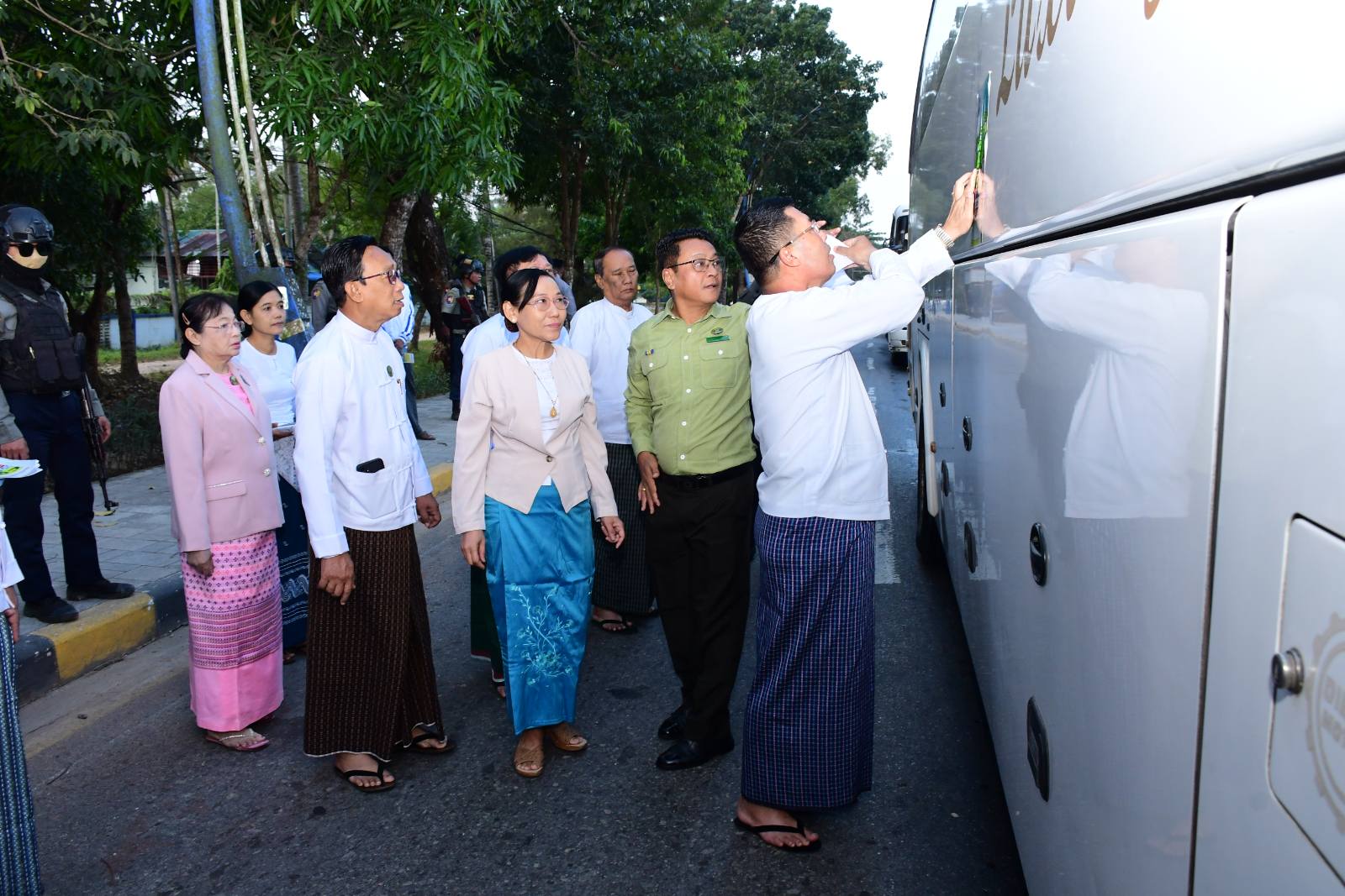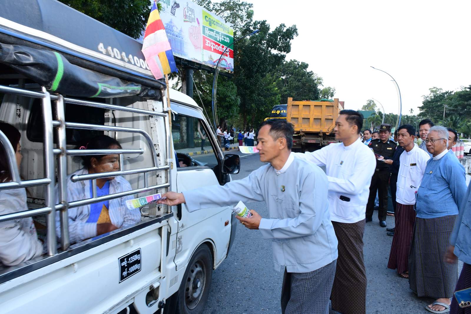 ဦးစွာ တိုင်းဒေသကြီးဝန်ကြီးချုပ်နှင့် အစိုးရအဖွဲ့ဝင်ဝန်ကြီးများသည် ခရီးသည် ယာဉ်များအား “ဒီမိုကရေစီခိုင်မြဲဖို့ မဲရုံသွားပြီးမဲပေးကြစို့”၊ “ ဒီမိုကရေစီပန်းတိုင်ဆီ မဲပေးခြင်း ဖြင့်တို့လှမ်းချီ”၊ “ရွေးကောက်ပွဲမှသည် ပိုမိုကောင်းမွန်သောအနာဂတ်ဆီသို့” ၊ “တိုင်းပြည် သာယာဝပြောရေး နိုင်ငံသားတိုင်းမဲပေးပေး”၊ လှမ်းစို့ကူညီမဲရုံဆီ ဒီမိုကရေစီဖော်ဆောင်မည်” စတစ်ကာများကို ကပ်နှံပေးခဲ့ပြီးနောက် ဌာနဆိုင်ရာများနှင့်အတူ “ဒို့အတူတူမဲပေးကြမယ်” လက်ကမ်းစာစောင်များကို ဖြန့်ဝေပေးခဲ့ကြသည်။