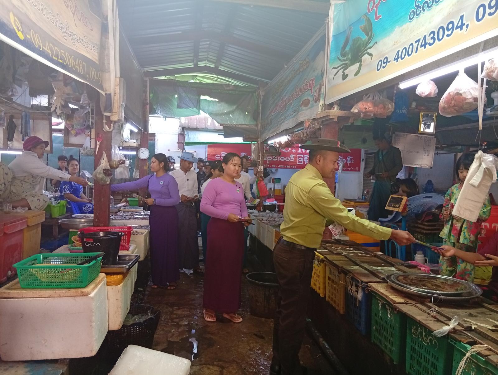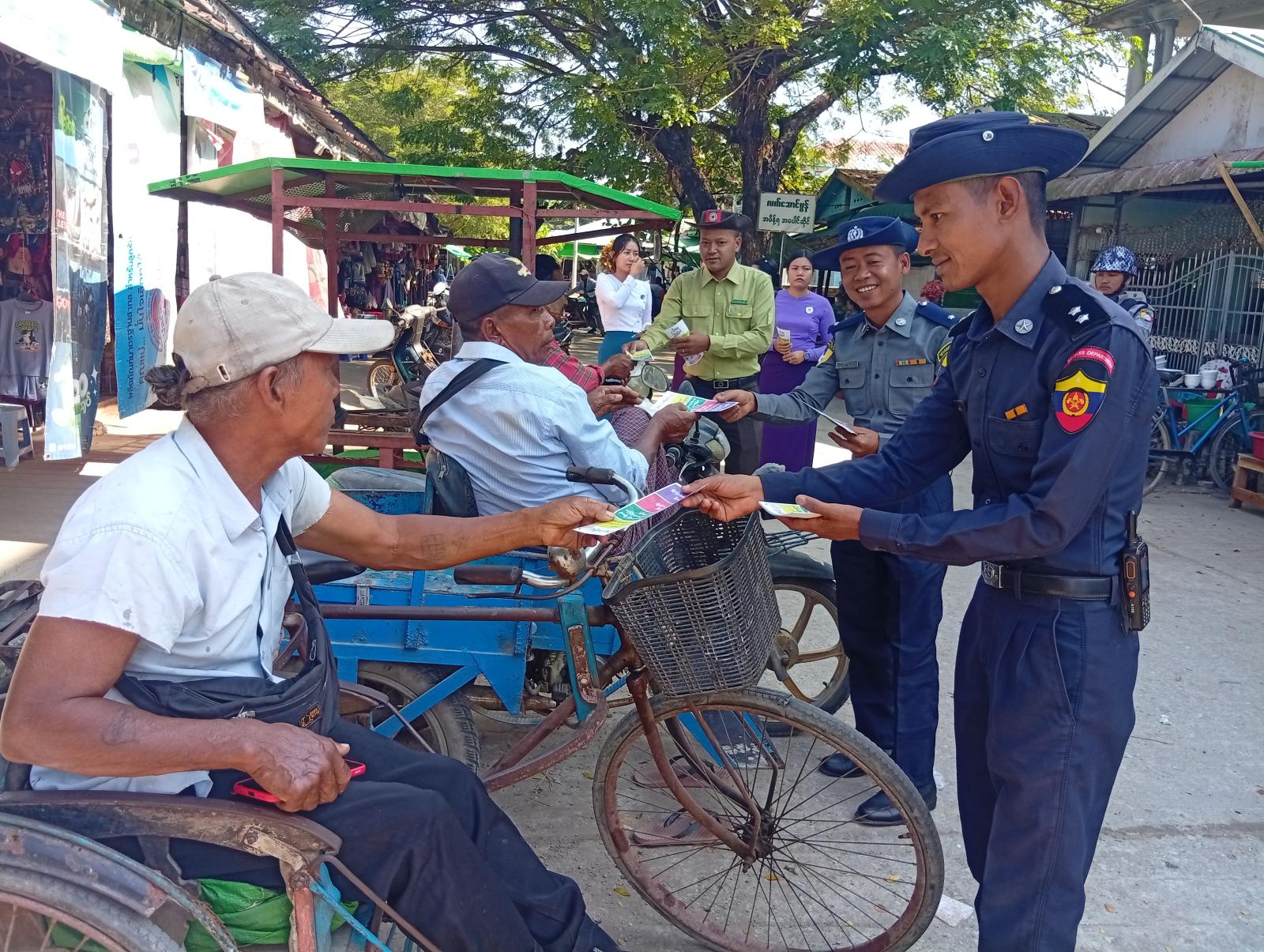 ၂၀၂၅ ခုနှစ်၊ ပါတီစုံဒီမိုကရေစီ အထွေထွေရွေးကောက်ပွဲ အောင်မြင်စွာကျင်းပပြုလုပ်နိုင်ရေးအတွက် ရွေးကောက်ပွဲဆိုင်ရာ အသိပညာပေးလှုံဆော်ရေး အစီအစဉ်များကို စတင်ဆောင်ရွက်လျက်ရှိရာ ဧရာဝတီတိုင်းဒေသကြီး၊ ပုသိမ်ခရိုင်၊ ချောင်းသာမြို့တွင် ယနေ့နံနက်ပိုင်းက “ဒို့အတူမဲပေးကြမယ်” အသိပညာပေးလက်ကမ်းစာစောင်များကို တာဝန်ရှိသူများပူးပေါင်း၍ အခမဲ့ဖြန့်ဝေခဲ့ကြသည်။