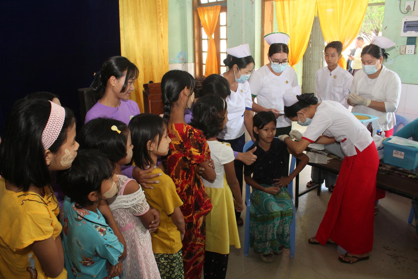 အဆိုပါကာကွယ်ဆေးထိုးနှံပေးမှုအား မြို့နယ်ပြည်သူ့ကျန်းမာရေးဦးစီးဌာနမှ ဦးဆောင်မှုဖြင့် ကျန်းမာရေးဝန်ထမ်းများက အသက် ၉ နှစ်ပြည့်ပြီး ၁၂ နှစ်မကျော်သော ကျောင်းသူများအား သားအိမ်ခေါင်းကင်ဆာရောဂါကာကွယ်ဆေး (HPV) ထိုးနှံခြင်းလုပ်ငန်းကို ဆောင်ရွက် ပေးခဲ့သည်။