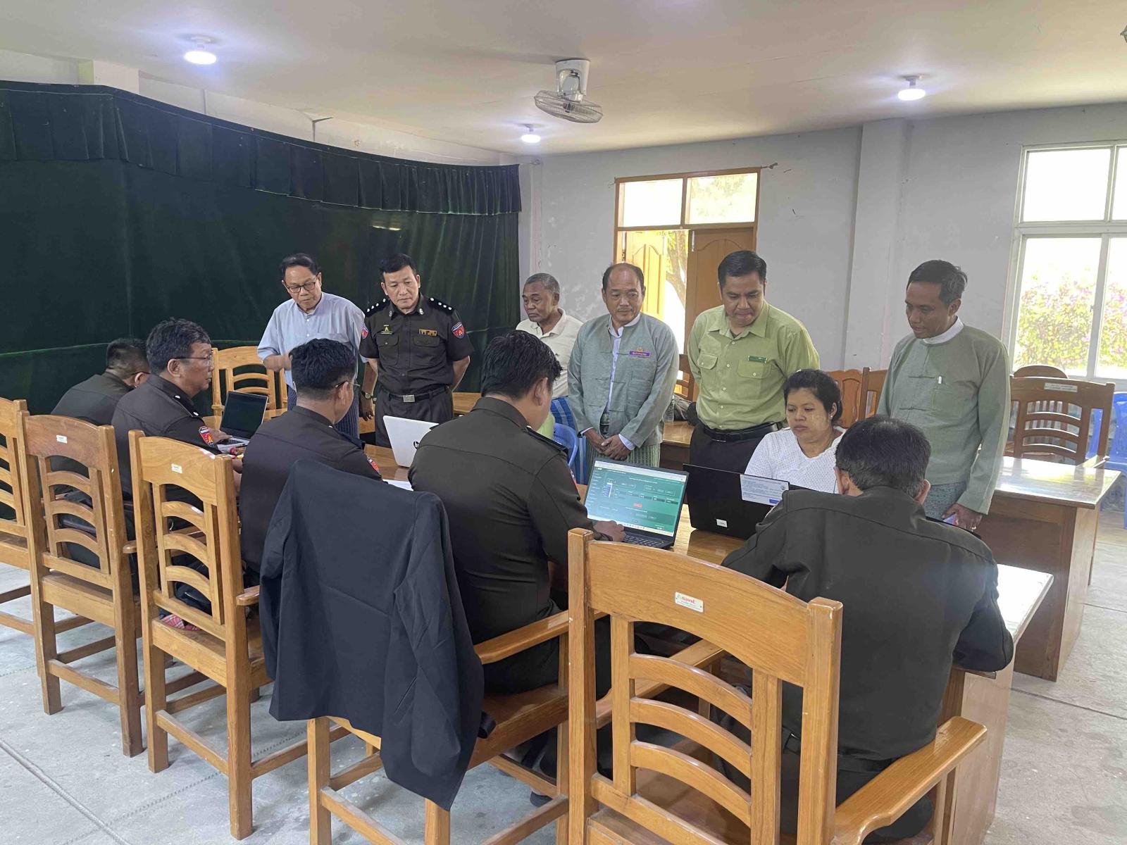 အဆိုပါ တိုက်ဆိုင်စစ်ဆေးရာတွင် ဒုတိယအကြိမ် မဲစာရင်းကြေညာပြီးနောက် မဲစာရင်းတွင်ပါဝင်ခြင်းမရှိသဖြင့်ပုံစံ(၃)၊ ပုံစံ(၄)နှင့် ပုံစံ၄(ဂ) လျှောက်ထားသူများအား ၎င်းတို့ လျှောက်ထားသည့် လျှောက်လွှာပါအချက်အလက်များနှင့် ပတ်သက်၍ လူဝင်မှုကြီးကြပ်ရေးနှင့် ပြည်သူ့အင်အားဝန်ကြီးဌာန၊ မြို့နယ်ဦးစီးမှူးရုံးရှိ Sever ဖြင့် တိုက်ဆိုင်စစ်ဆေးဆောင်ရွက် ခြင်းများ ပြုလုပ်လျက်ရှိရာသို့ မြို့နယ်စီမံခန့်ခွဲရေးနှင့် အုပ်ချုပ်ရေးကော်မတီဥက္ကဋ္ဌ ဦးဝင်းမင်းထွန်း၊ လူဝင်မှုကြီးကြပ်ရေးနှင့်ပြည်သူ့အင်အားဝန်ကြီးဌာန၊ မြို့နယ်ဦးစီးမှူး ဦးအောင် သွင်၊ မြို့နယ်ရွေးကောက်ပွဲကော်မရှင်ဥက္ကဋ္ဌ ဦးဝင်းထွန်းကျော်နှင့်အဖွဲ့ဝင်များမှ ကြည့်ရှုစစ်ဆေး၍ လိုအပ်သည်များ မှာကြားကာ ဆောင်ရွက်ခဲ့ပါကြောင်း သိရသည်။