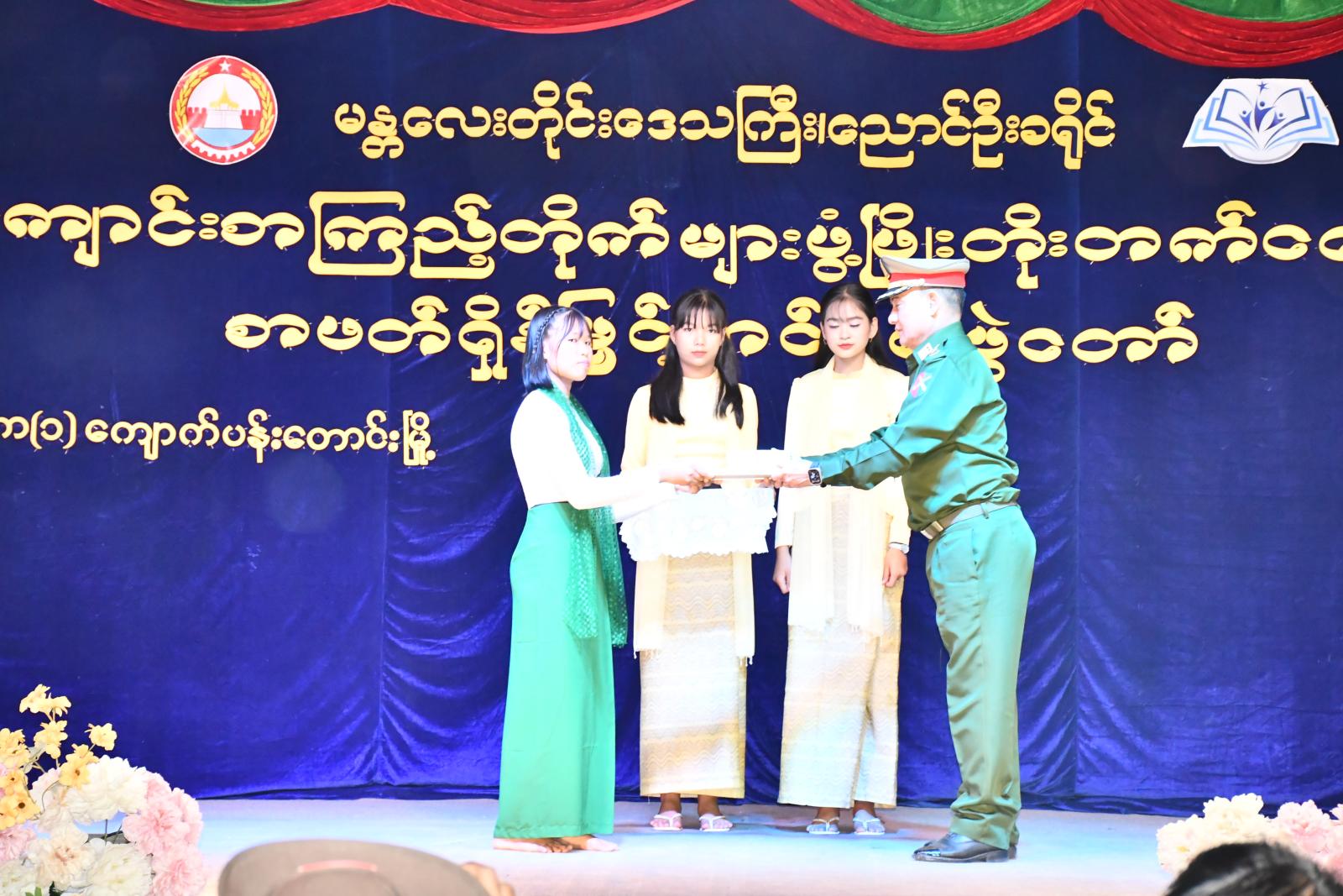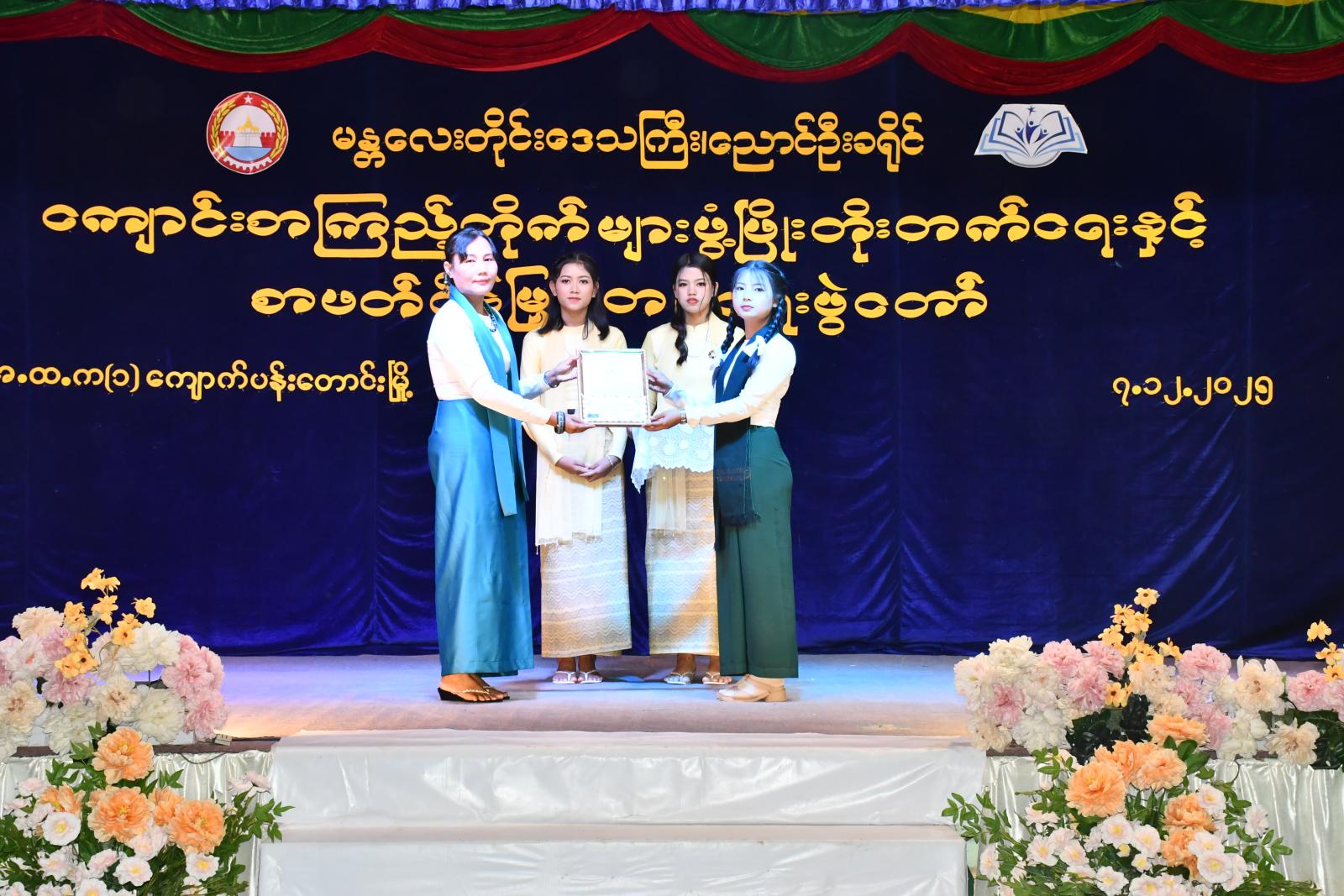 ထို့နောက် ကျောက်ပန်းတောင်း တပ်နယ်မှူး ဗိုလ်မှူးချုပ်ဟိန်းဆက်၊ ပြန်ကြားရေးနှင့်ပြည်သူ့ဆက်ဆံရေးဦးစီးဌာန၊ မန္တလေးတိုင်းဒေသကြီး ဦးစီးမှူး ဒေါ်ဝေဝေဖြိုး၊ ညောင်ဦးခရိုင် စီမံခန့်ခွဲရေးနှင့်အုပ်ချုပ်ရေးကော်မတီဥက္ကဋ္ဌ ဦးကျော်မင်းညိုနှင့် တာဝန်ရှိသူများက မူလတန်းအဆင့်ကဗျာရွတ်ဆိုပြိုင်ပွဲ၊ အလယ်တန်းအဆင့်ပုံပြင်ပြောပြိုင်ပွဲ၊ အထက်တန်းအဆင့် ကျပန်းစကားပြောပြိုင်ပွဲနှင့် လူငယ်စကားဝိုင်းတွင် ဦးဆောင်ဆွေးနွေးခဲ့သည့်ကျောင်းသား၊ ကျောင်းသူများအား ဆုများပေးအပ်ချီးမြှင့်ခဲ့ကာ သက်ဆိုင်ရာ ကျောင်းသား၊ ကျောင်းသူများနှင့် ဆုရကျောင်းသား၊ ကျောင်းသူများ စုပေါင်းအမှတ်တရဓာတ်ပုံ ရိုက်ကူးခဲ့ကြောင်း သိရသည်။
