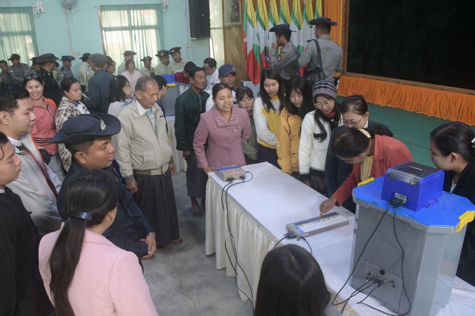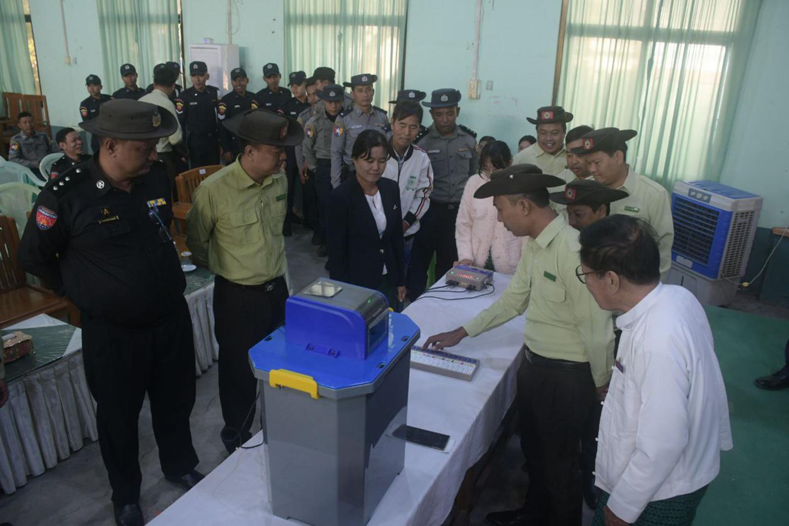 ထို့နောက် မြို့နယ်စီမံခန့်ခွဲရေးနှင့်အုပ်ချုပ်ရေးကော်မတီဥက္ကဋ္ဌ ဦးစိုးထွဋ်နှင့်အဖွဲ့ဝင်များ၊ မြို့နယ်အဆင့်ဌာနဆိုင်ရာများ စုစုပေါင်း ၁၇၀ ဦးတို့က မြန်မာအီလက်ထရောနစ်မဲပေးစက် (MEVM) ဖြင့် လက်တွေ့စမ်းသပ်မဲပေးခဲ့ကြောင်း သိရသည်။