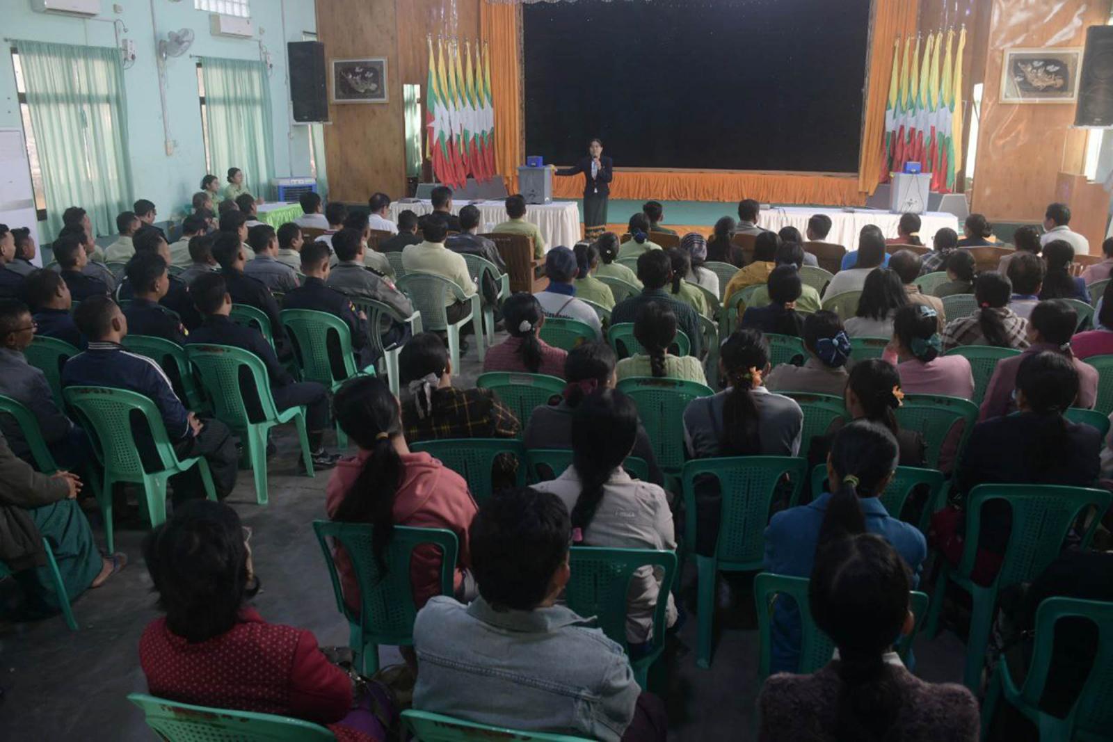 အခမ်းအနားတွင် မြို့နယ်ရွေးကောက်ပွဲကော်မရှင်အဖွဲ့ခွဲ အတွင်းရေးမှူး ဒေါ်စုလှိုင်ထွန်းက မြန်မာအီလက်ထရောနစ်မဲပေးစက် (MEVM) လုပ်ငန်းဆောင်ရွက်ပုံ အဆင့်ဆင့်နှင့် အသုံးပြုနည်းအား ရှင်းလင်းပြောကြားခဲ့သည်။